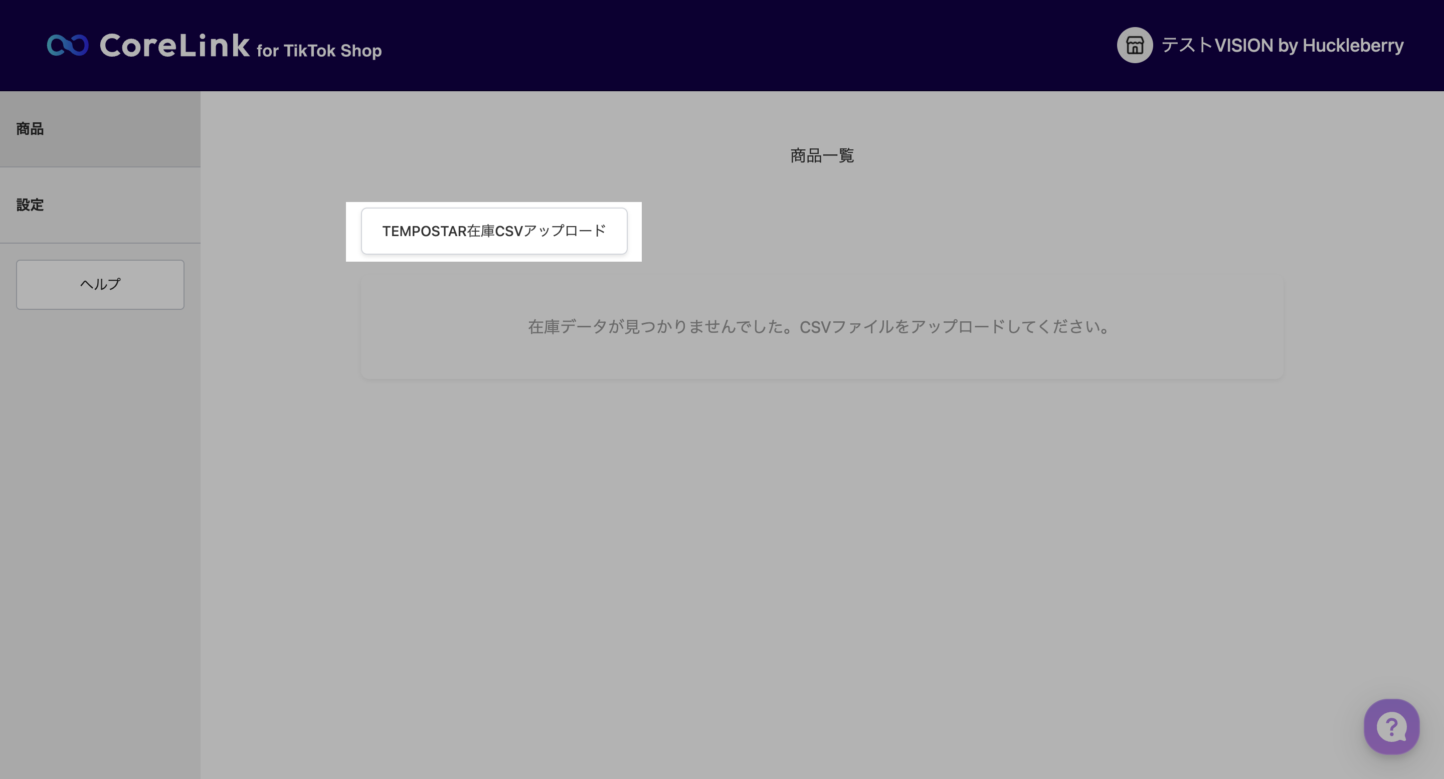 1. TEMPOSTAR在庫CSVアップロードをクリックし、ダウンロードしたCSVファイルをアップロードする