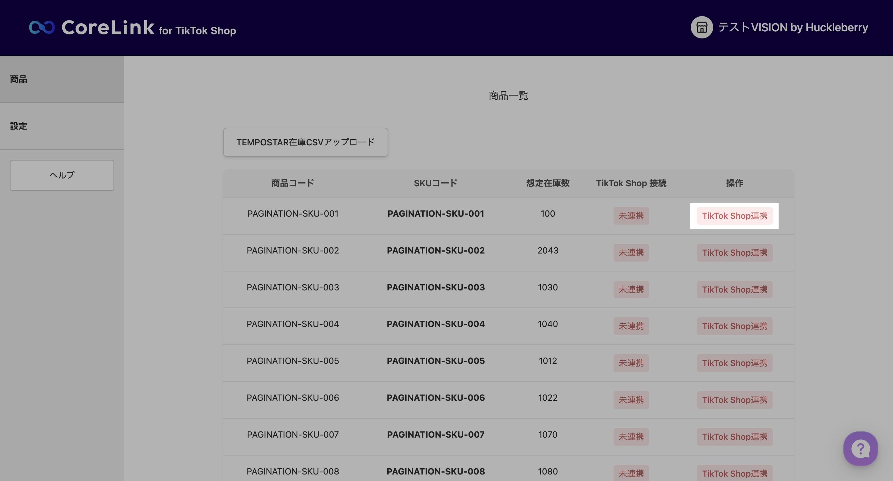 TEMPOSTARの商品の在庫をTikTok Shopに連携する