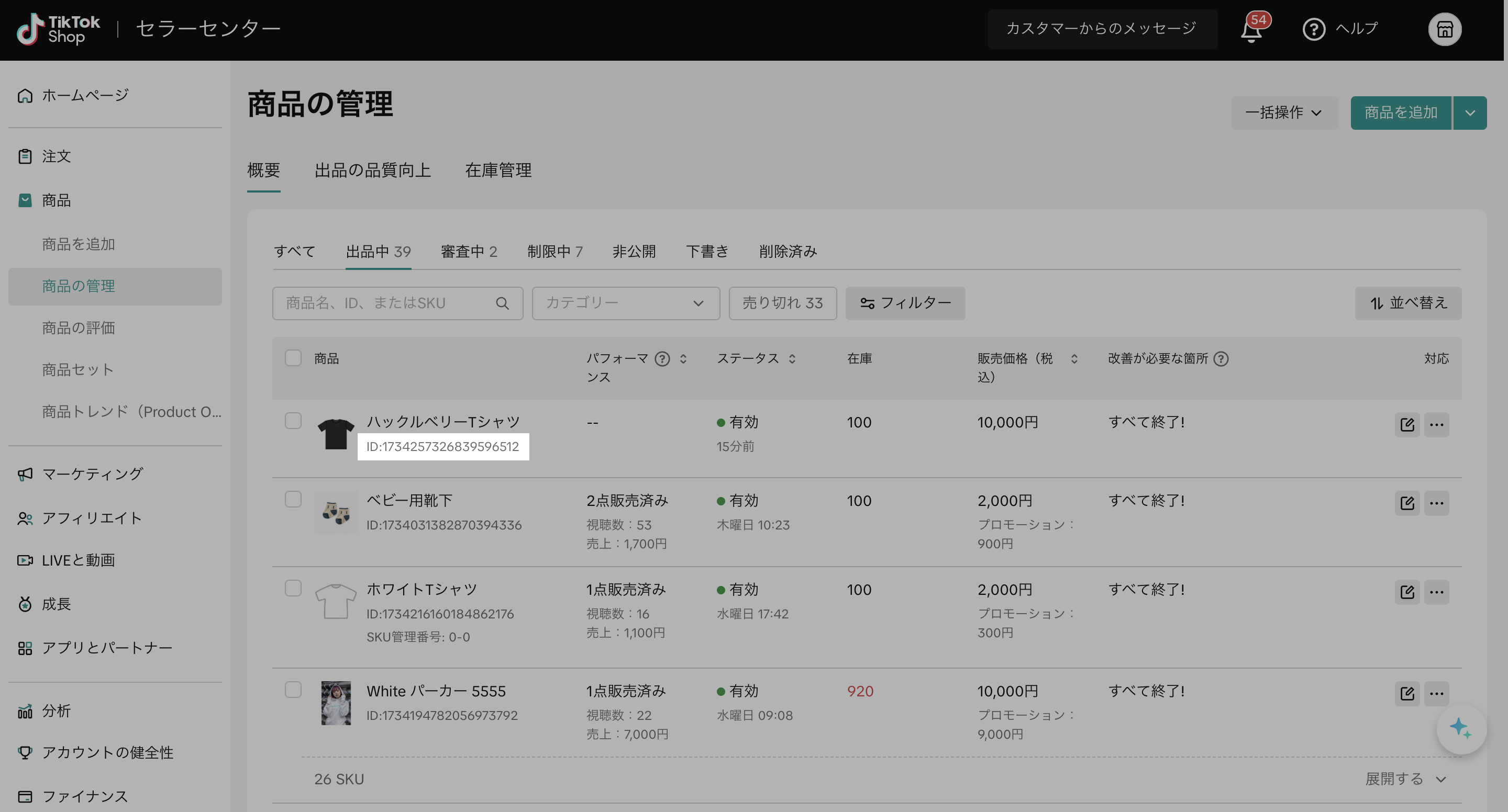 1. TikTok Shop セラーセンターにて、紐付けたい商品の「商品ID」をコピーする
