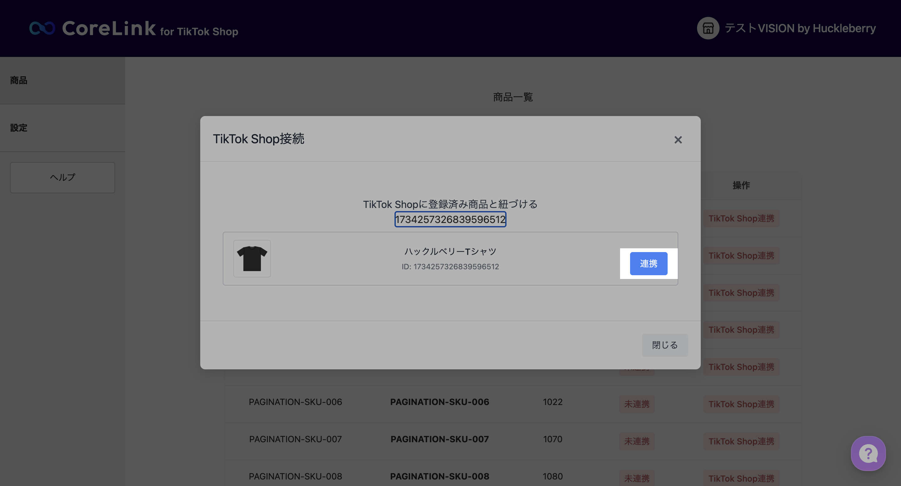 1. コピーした商品IDを貼り付けて、連携ボタンをクリック