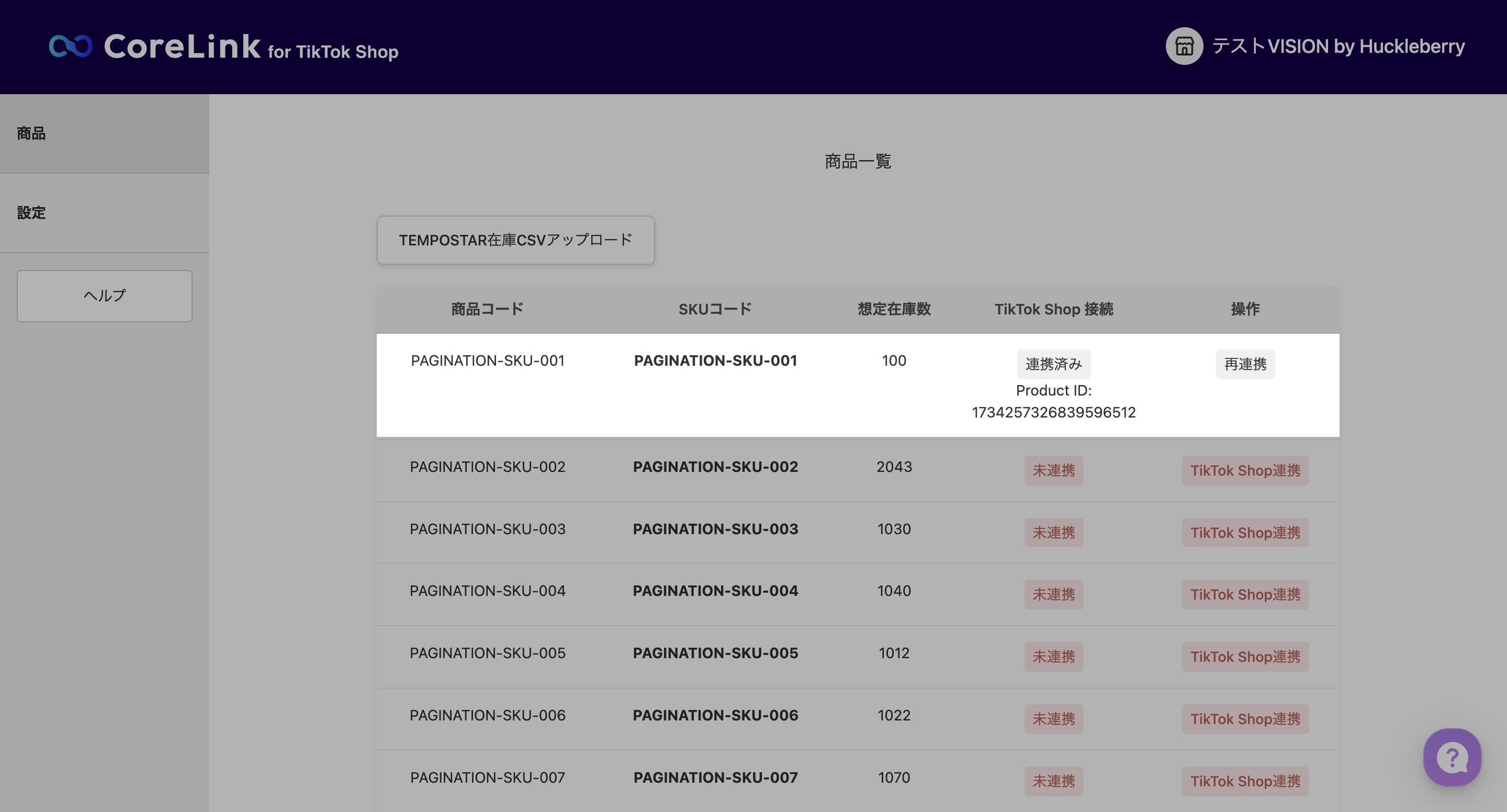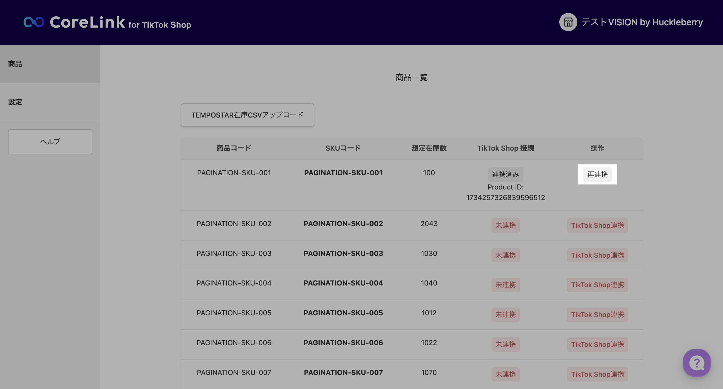 1. ステータスが「連携済み」になると、TikTok Shopへ商品の在庫が連携されます。