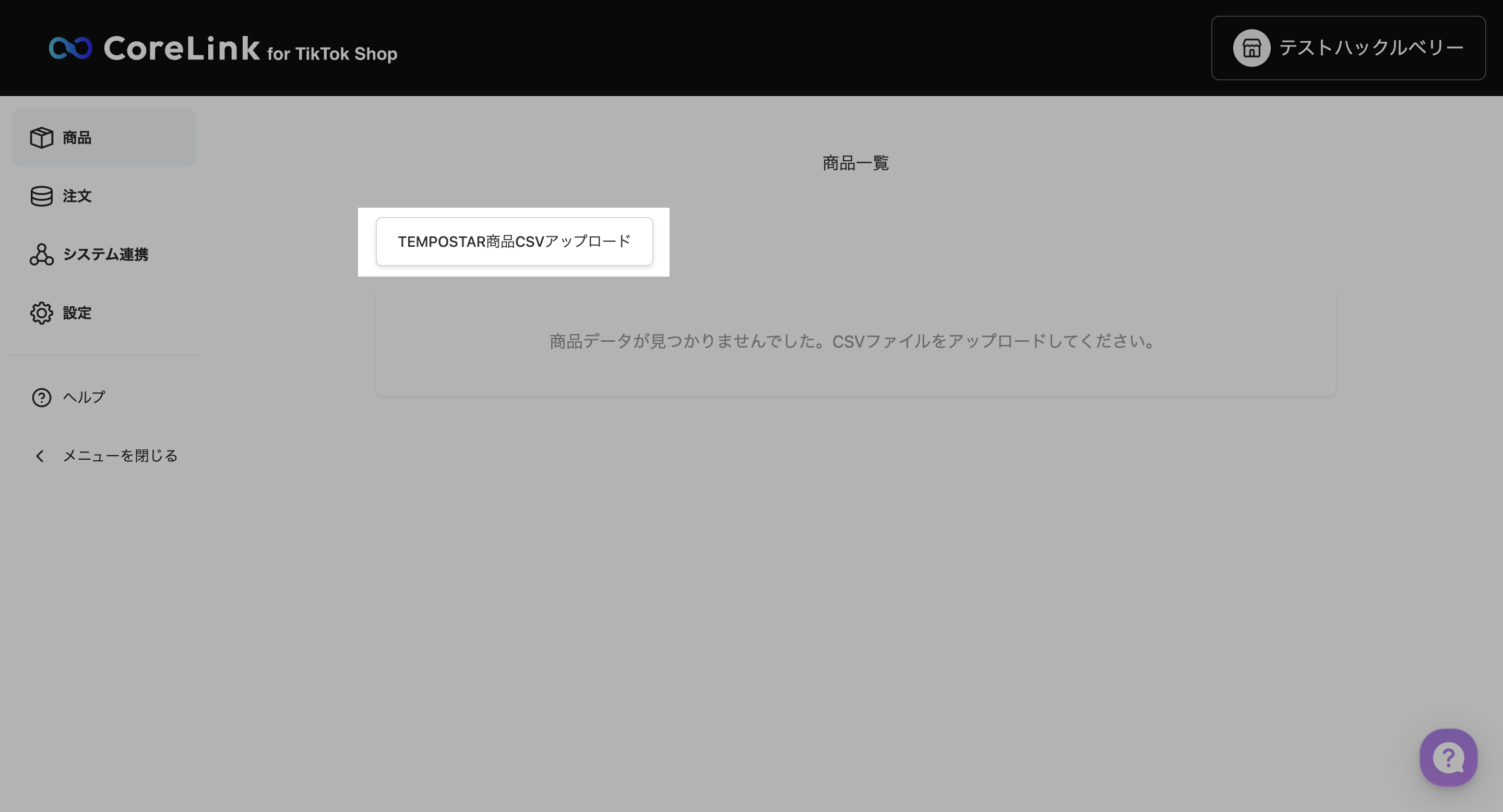 TEMPOSTAR商品CSVアップロードをクリックし、ダウンロードしたCSVファイルをアップロードする