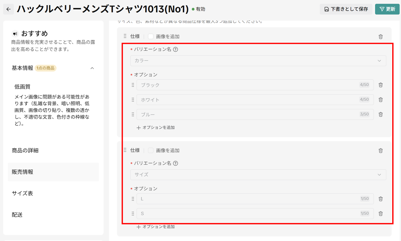 ※バリエーション情報に不整合がある場合、在庫情報は同期されません。