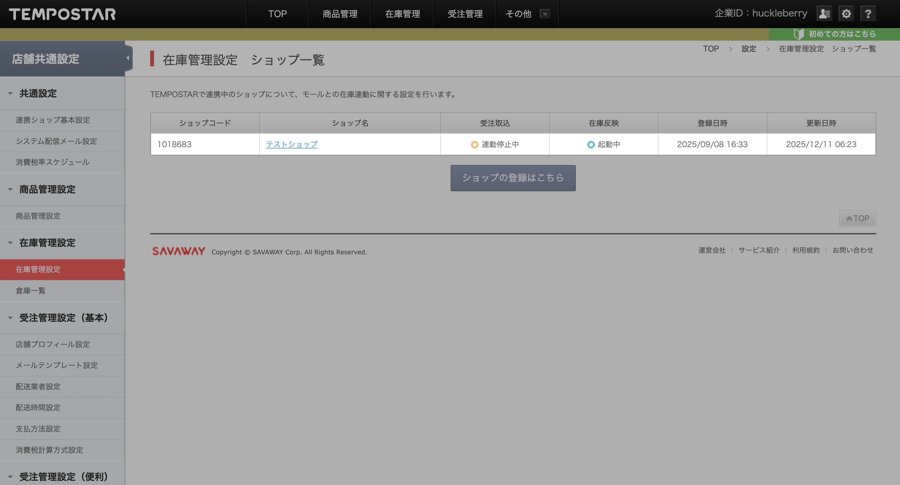 「設定」> 「在庫管理設定」より、連携するショップ名をクリック