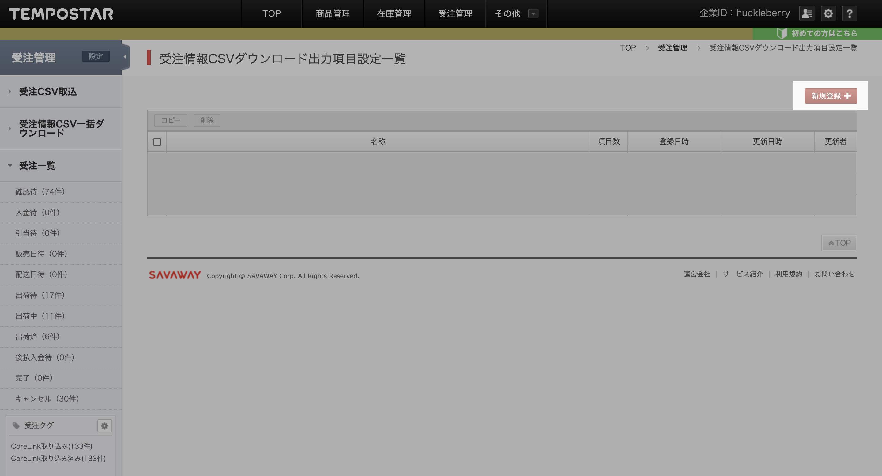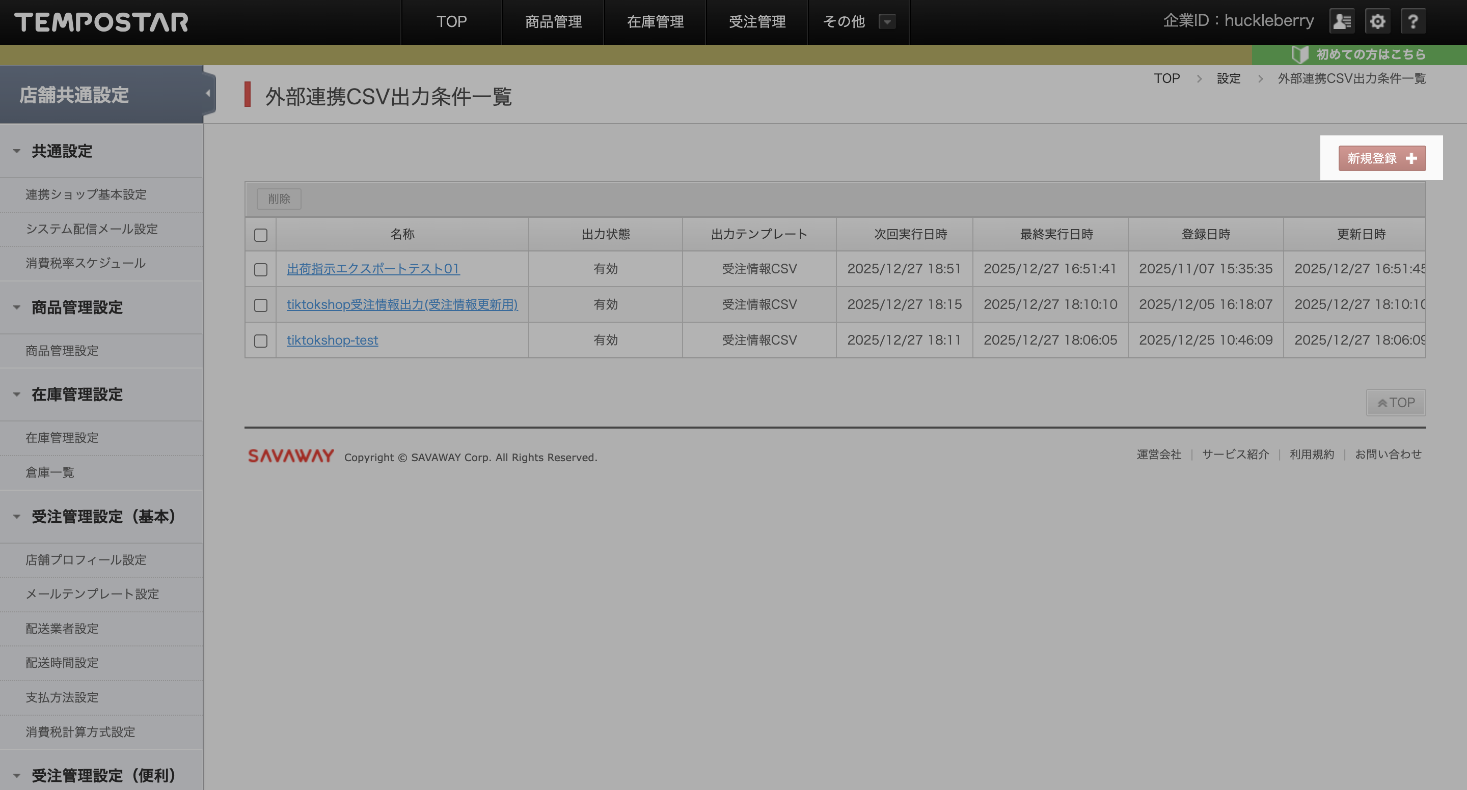TikTok Shopと受注データを連携するため、TEMPOSTAR側で受注出力に関する設定を行います。