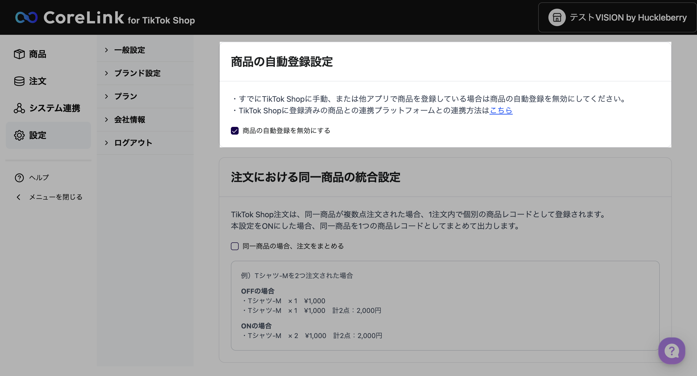 左メニュー「設定」>「一般設定」より、「商品の自動登録を無効にする」をONにする