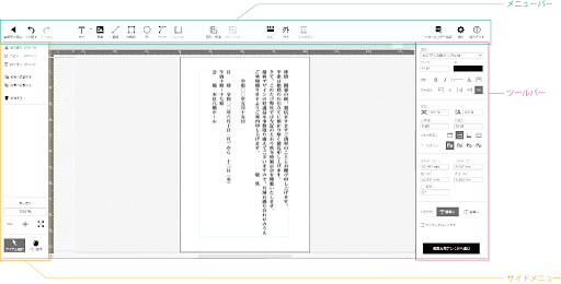 ①ルビ…ルビ(フリガナ)を入力したいときに使用します。 ②外字…外字を入力したいときに使用します。 ③一部を横書き…縦書きアイテム内の文字を横書きにしたいときに使用します。