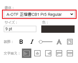 「文字入力モード」で何も選択していない場合、文字サイズや文字間、行送りなどを変更すると、文字枠内の文字全体に対して変更が行われます。