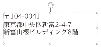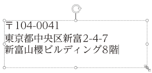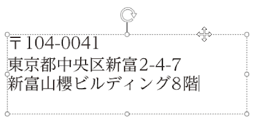 文字枠が点線になっている状態が「文字入力モード」です。このモードになっていない場合は、文字枠の中をクリックして「文字入力モード」にします。
