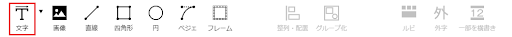 編集画面上部のメニューバーにある「文字」アイコンをクリックするとキャンバスに文字枠が追加されます。