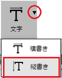 初期設定では横書き用の文字枠になっています。縦書き用の文字枠を追加したい場合は、「文字」アイコン右横の「▼」をクリックして「縦書き」をクリックしてください。