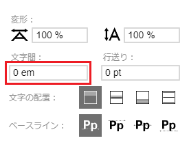変更したい文字または文字枠を選択し、調整パネルの「文字間」の数値を変更します。