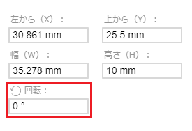 ②数値を入力して文字枠を回転する