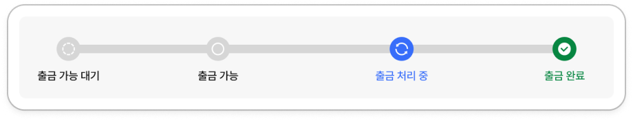 출금 요청 | 출금 요청이 완료된 상태입니다. 매월 말까지 취합된 신청된 출금 요청 건은 익월 1영업일부터 순차적으로 송금을 위한 절차가 진행됩니다. |