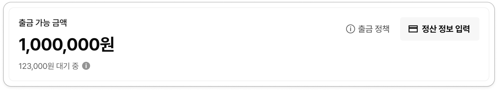 출금 가능 금액 | 상품별 정산 정책에 따라 크리에이터가 언제든 출금 신청을 할 수 있는 실질적인 가용 잔액입니다. |