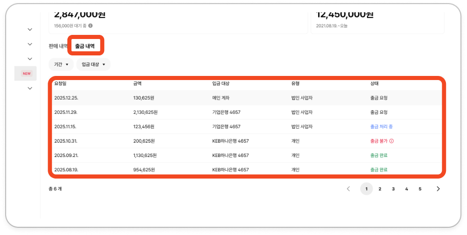 ‘출금 요청하기’를 통해 신청한 출금 내역을 확인하실 수 있습니다.