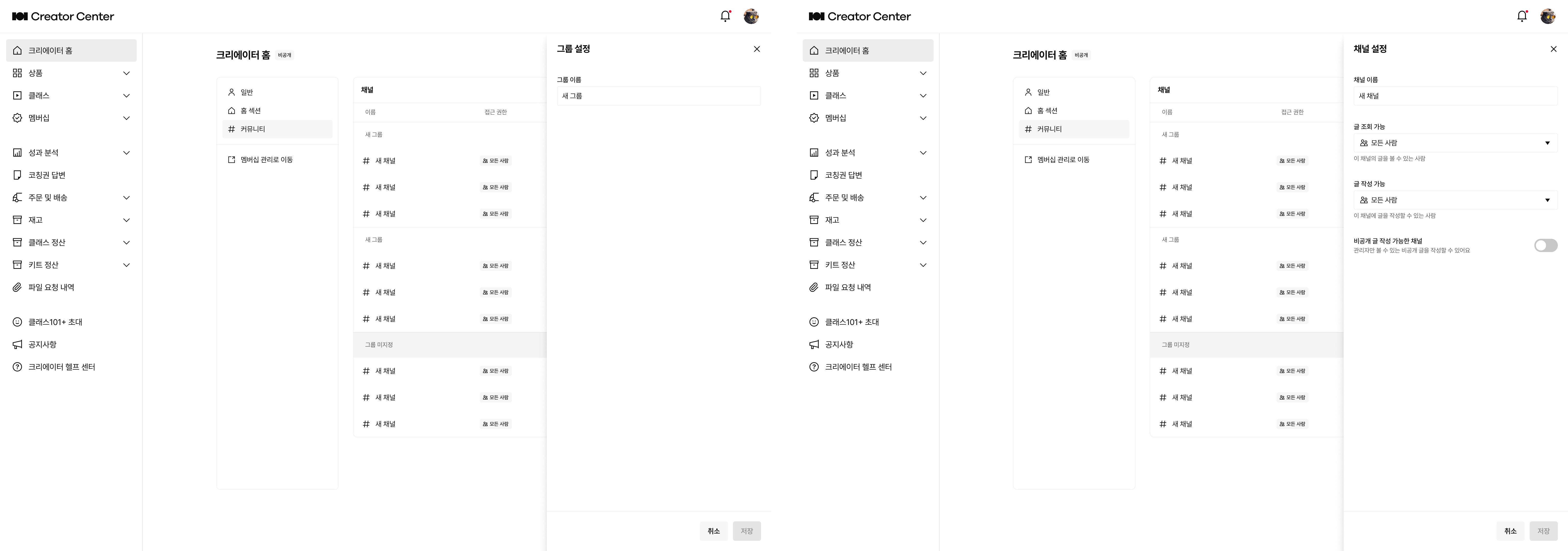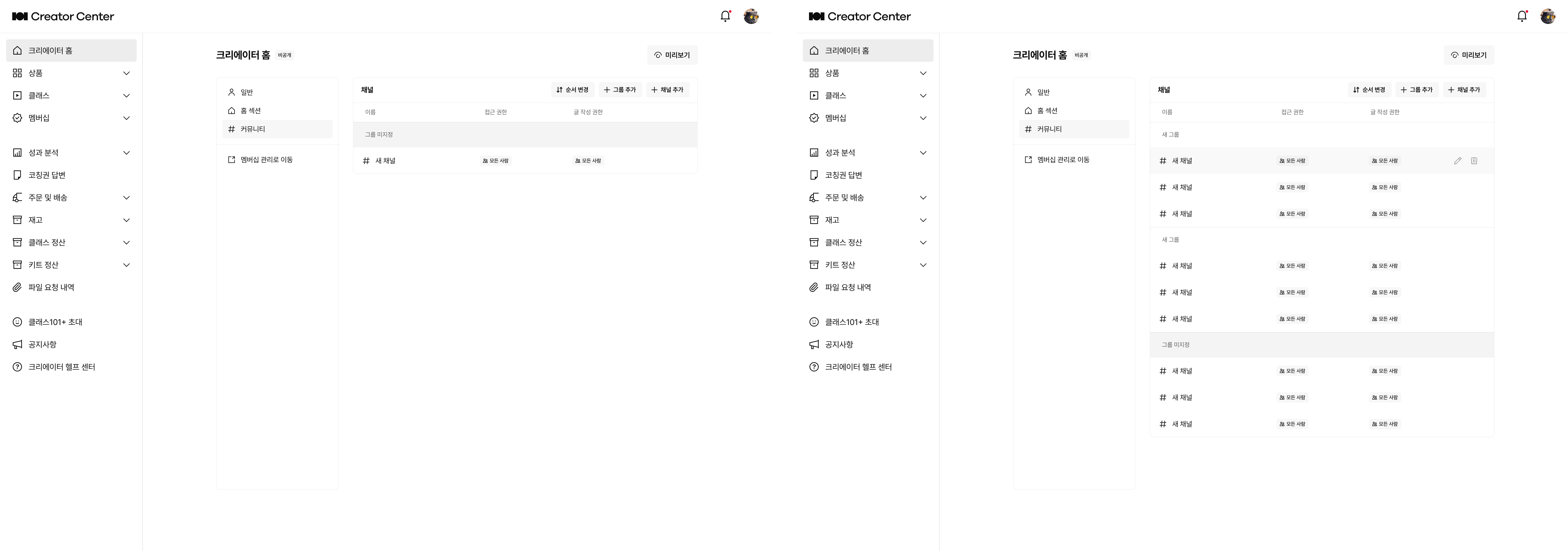 크리에이터 홈에서 ‘관리자’ 권한으로 커뮤니티를 조회하고 활동, 관리할 수 있습니다.