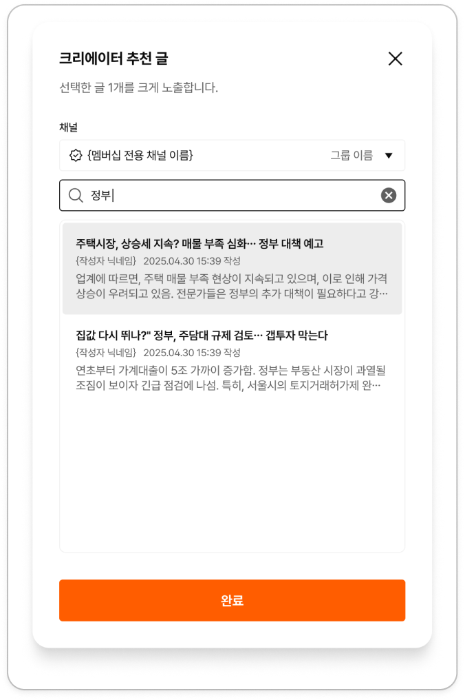 커뮤니티에 활발히 글을 작성하면 크리에이터 홈에 자동으로 최신 포스트가 노출됩니다.