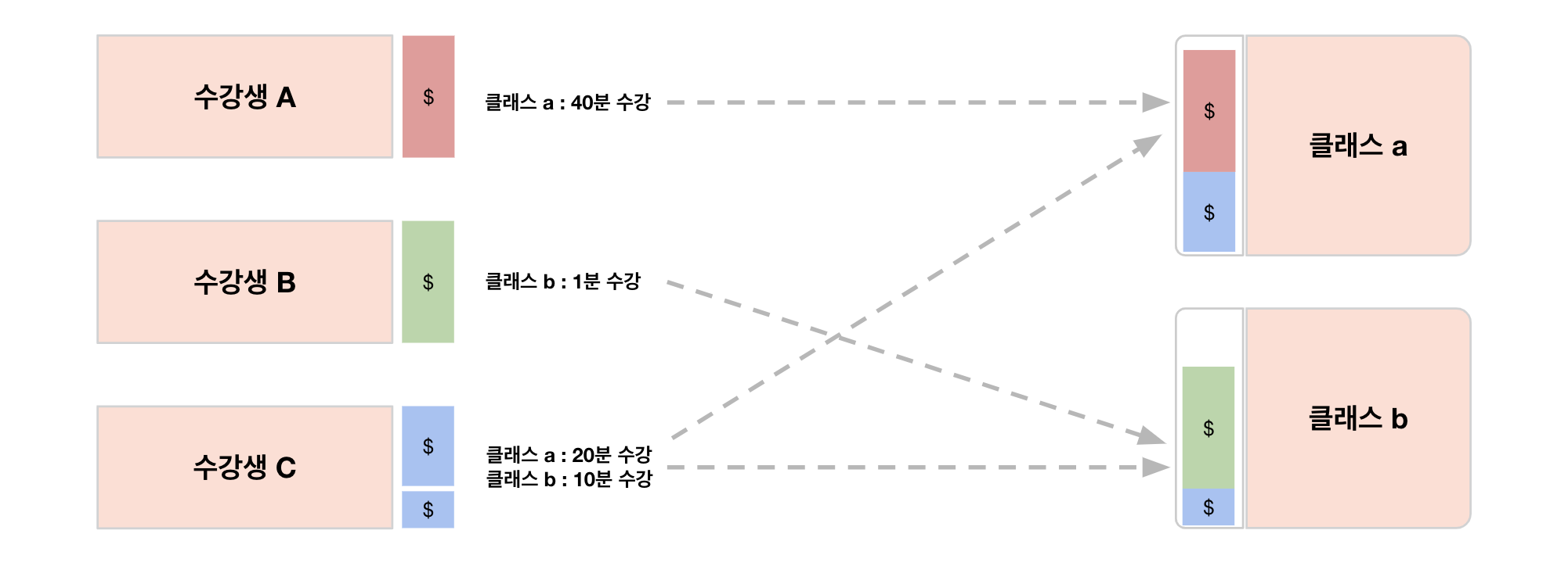 즉, 더 많은 수강생이 더 오래 수강할수록 해당 클래스의 정산금 총합은 증가합니다.