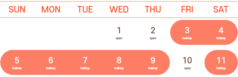 - October 2nd → Regular Business Hours