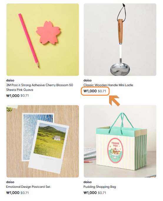 View prices in both KRW (₩) and USD ($) simultaneously for easy comparison without manual calculations.