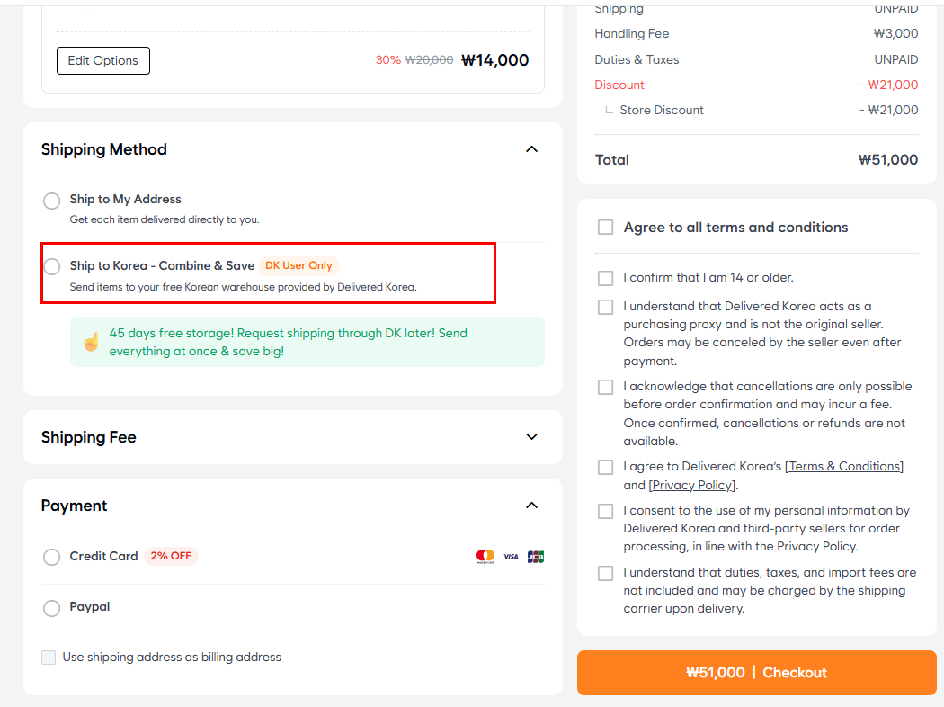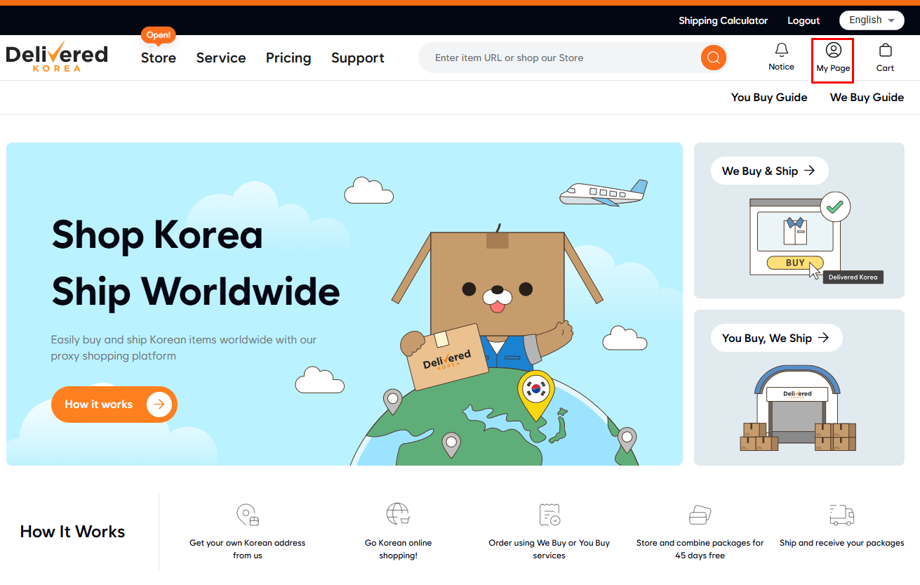 This option allows you to send items to the personal warehouse address provided by Delivered Korea.