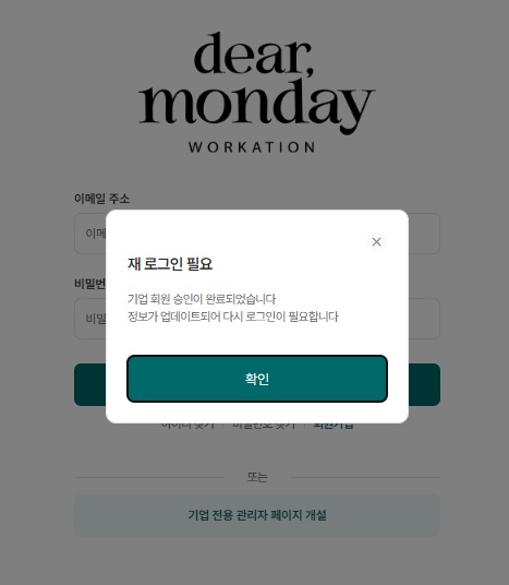 다니시는 회사가 디어먼데이 기업 고객인 경우 회사가 제공하는 선불 크레딧을 받기 위해 기업 임직원으로 전환이 필요합니다.