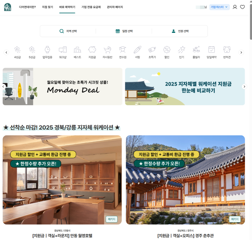 - 기업 회원 가입은 디어먼데이 기업 회원 담당자와 사전 협의 후 신청 / 승인 후 사용 가능