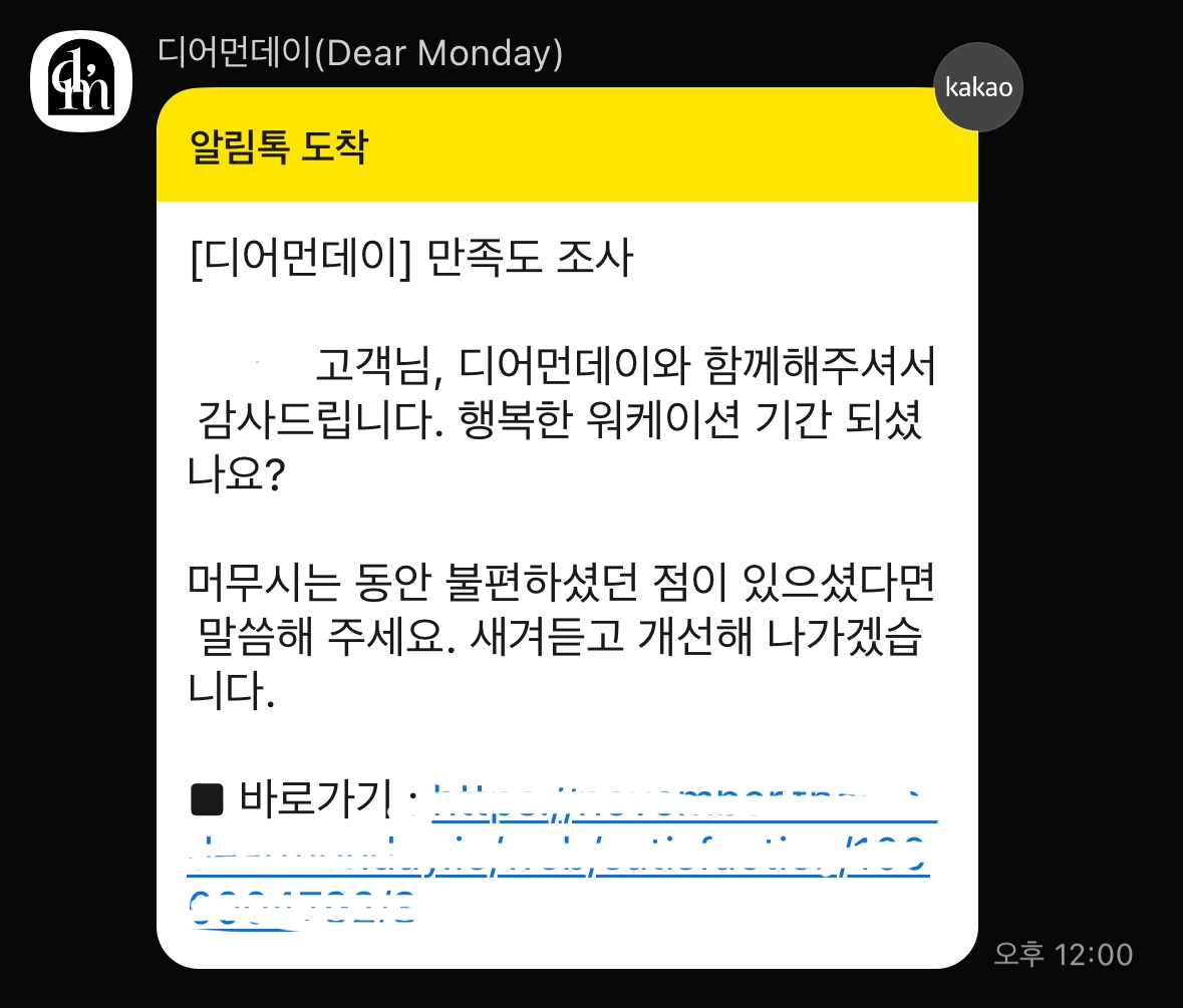 [디어먼데이] 예약 최종 확정 알림톡 수신 = 최종 예약 확정 !