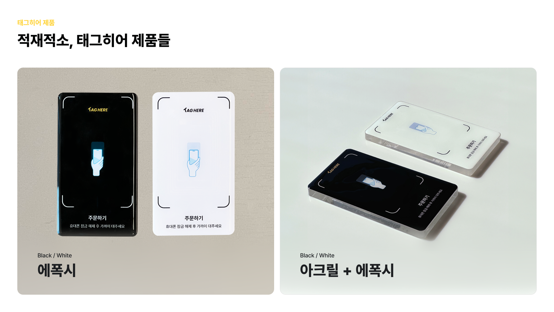 00:03~00:25 ‣ 태그히어 구성 안내 (기본/아크릴)