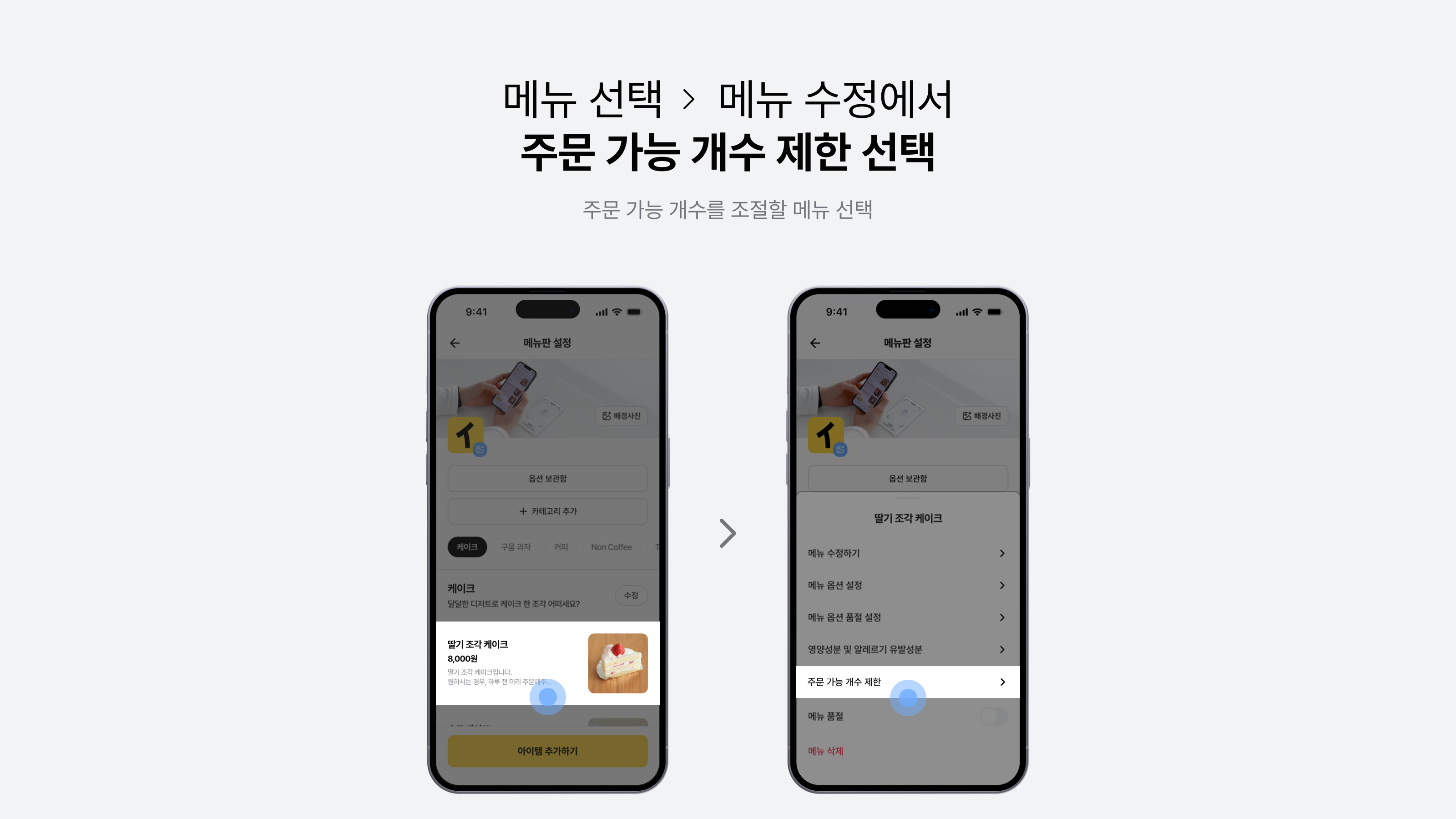 주문 가능 개수를 조절할 메뉴 선택