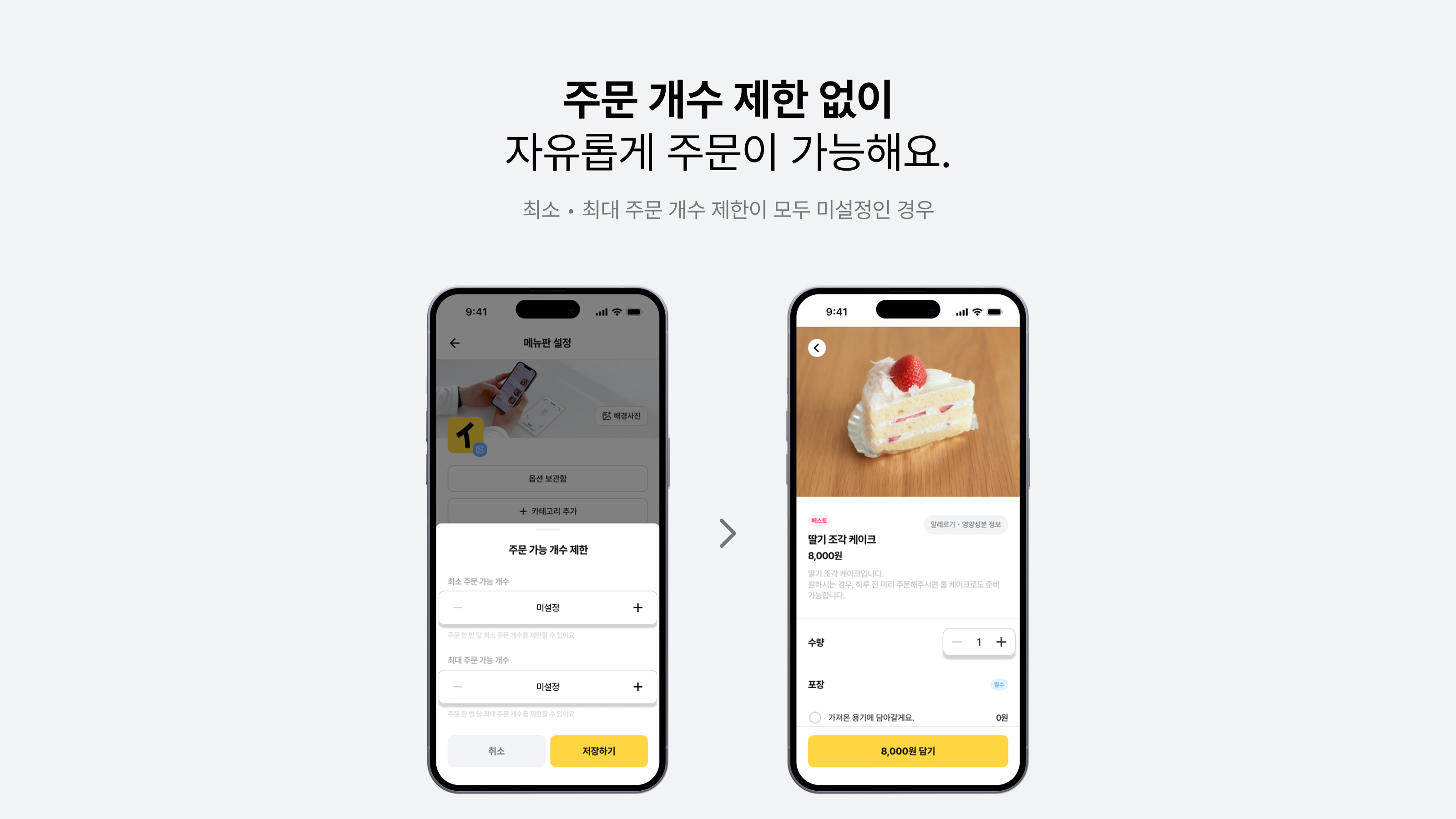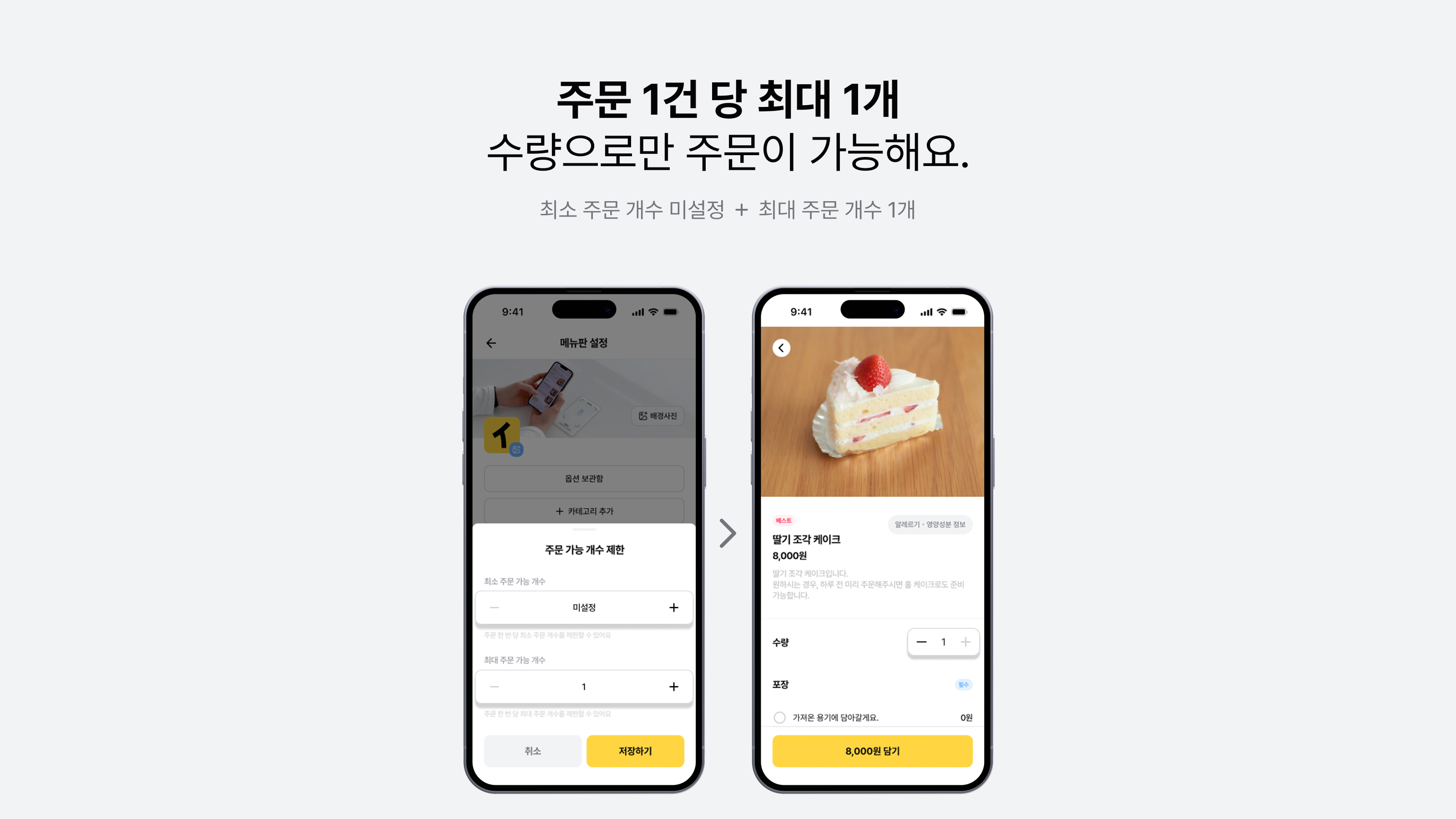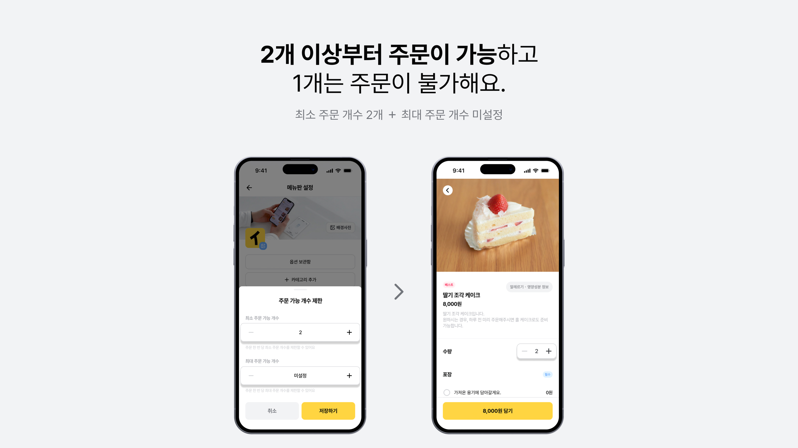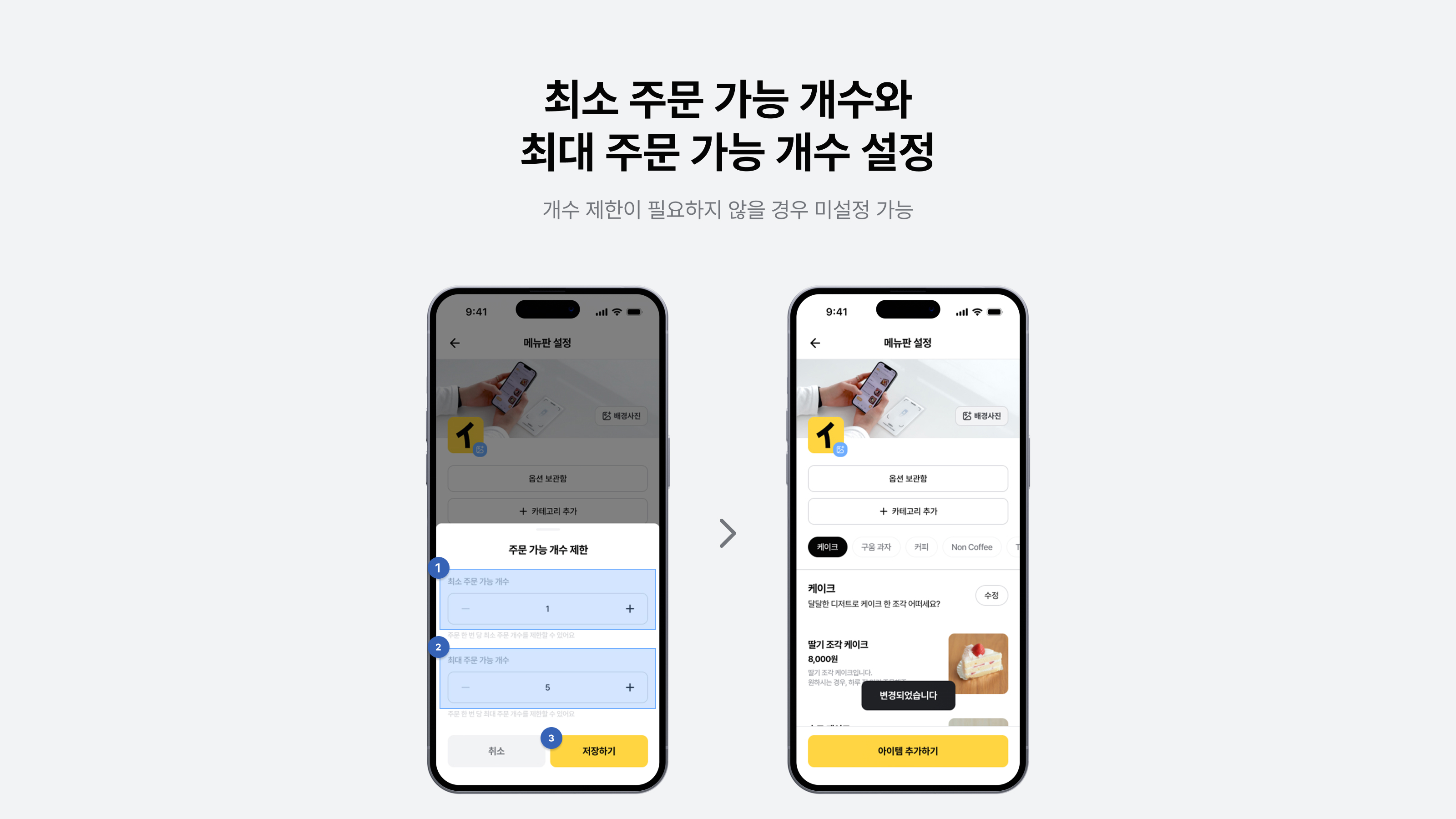 최소 • 최대 주문 개수 제한 기능 은