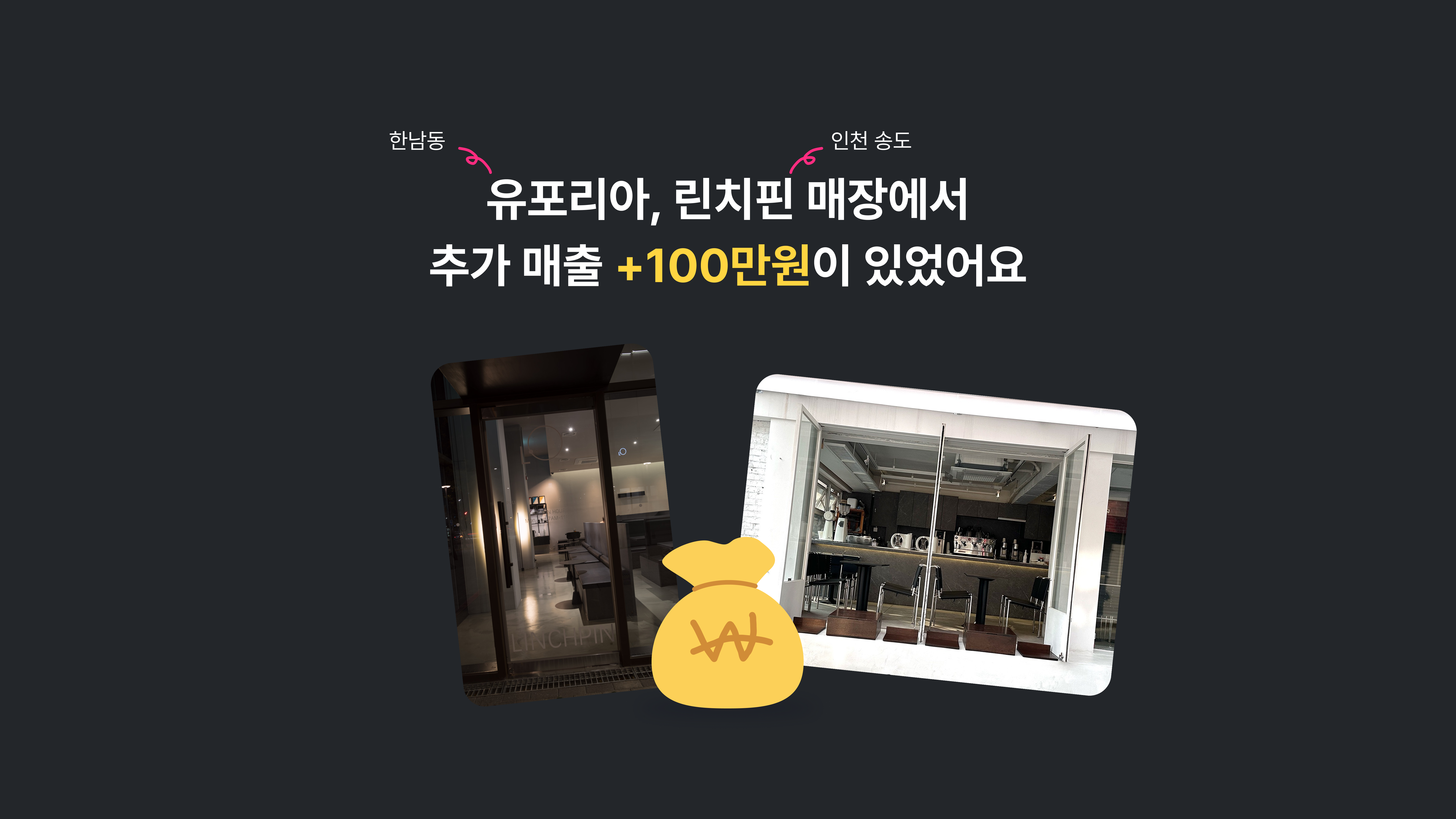 인천 송도의 린치핀과 한남동의 유포리아커피로스터스에서 한 달 간 진행한 태그히어 베타 테스트를 통해 약 30팀의 고객이 추가로 방문하셨어요!