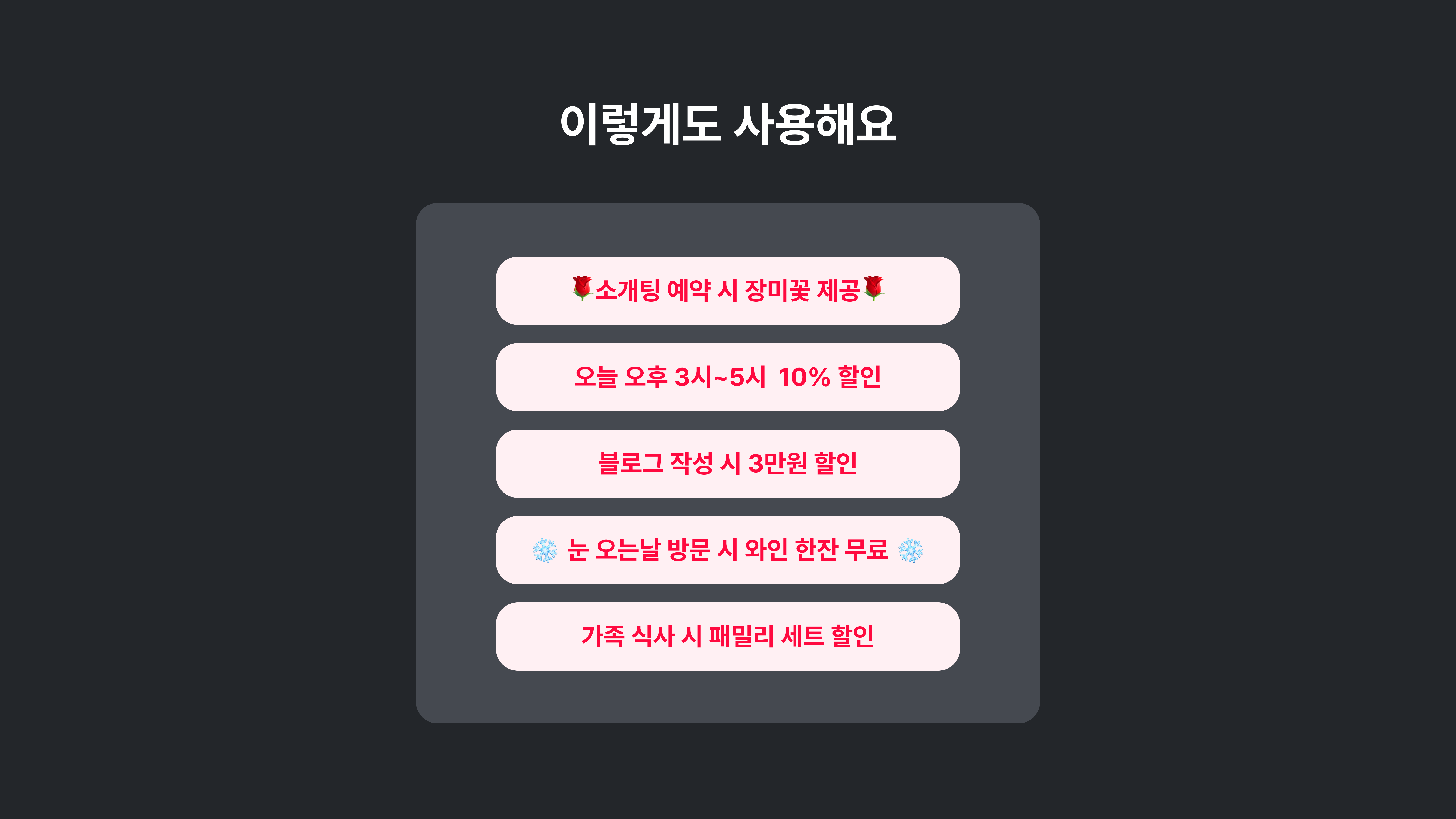 원래 진행하시던 이벤트나 새로운 이벤트를 진행할 수 있습니다!