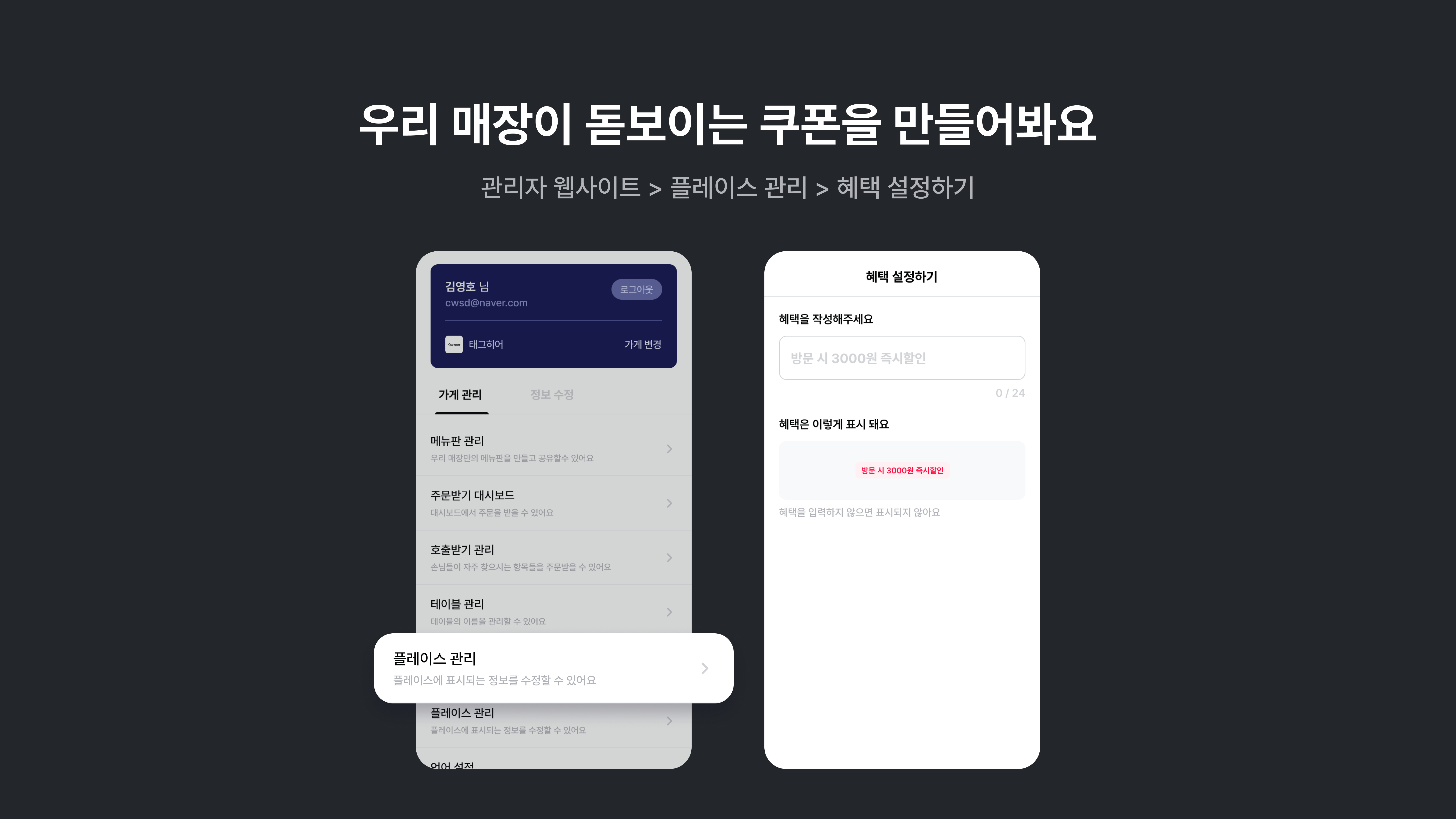 (관리자 웹사이트 > 플레이스 관리 > 혜택 설정하기)