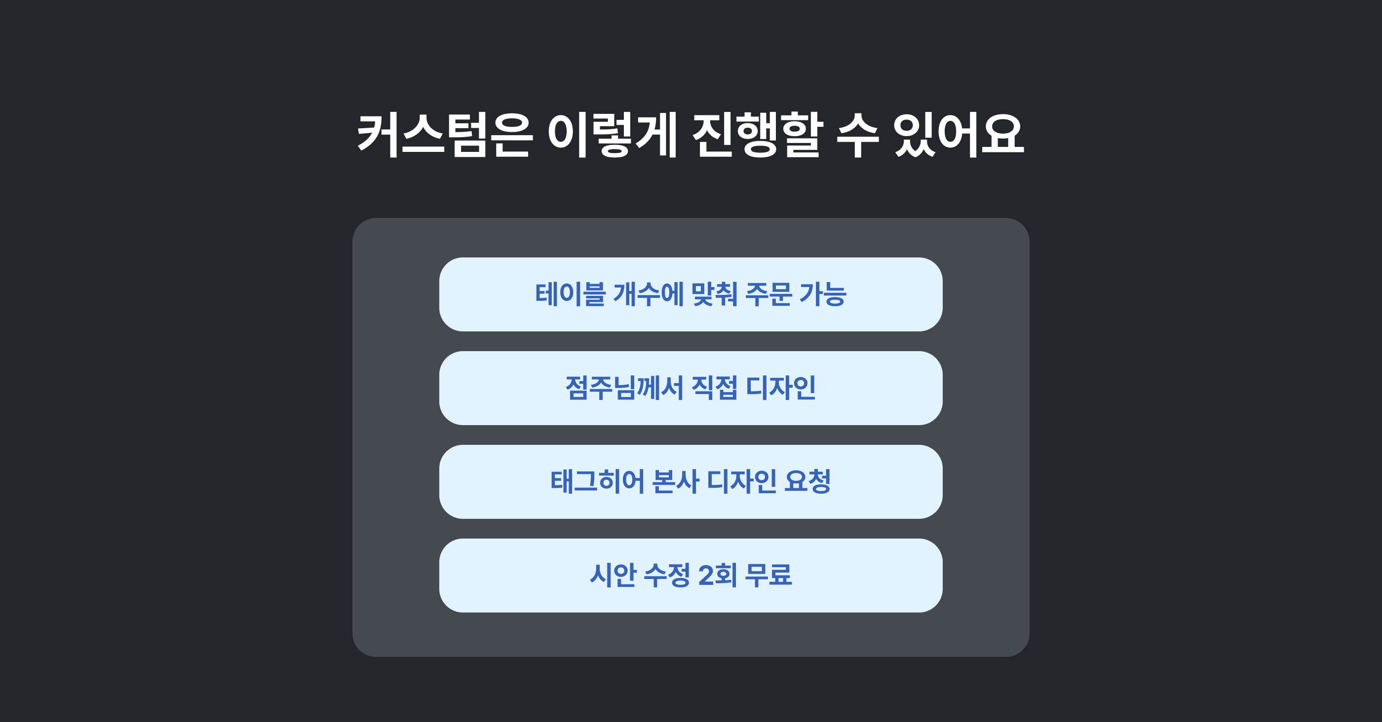 커스텀 진행 시 테이블 개수에 맞춰 주문이 가능합니다.