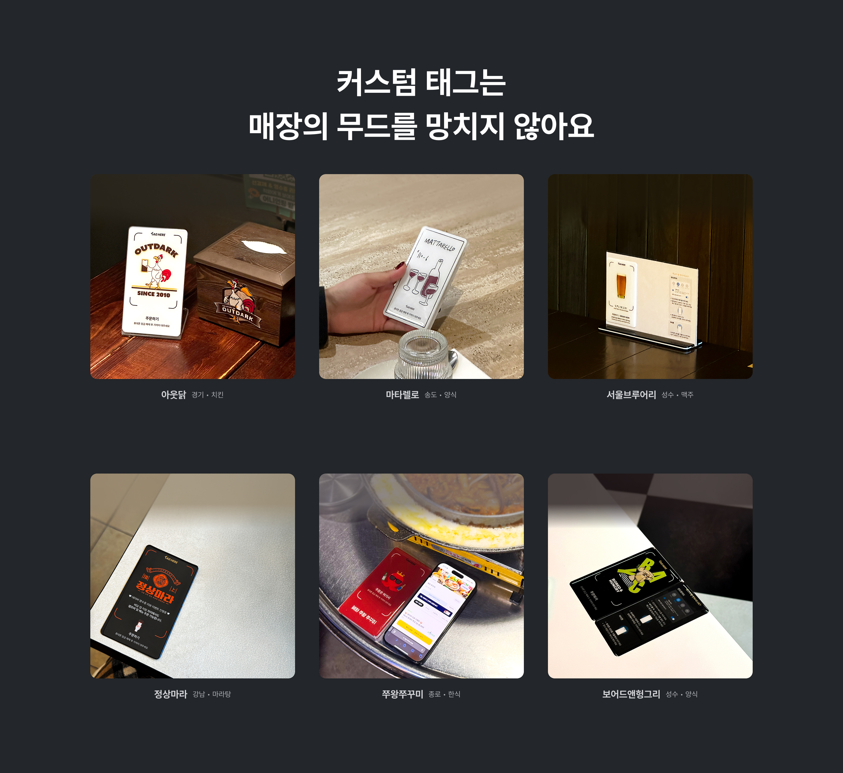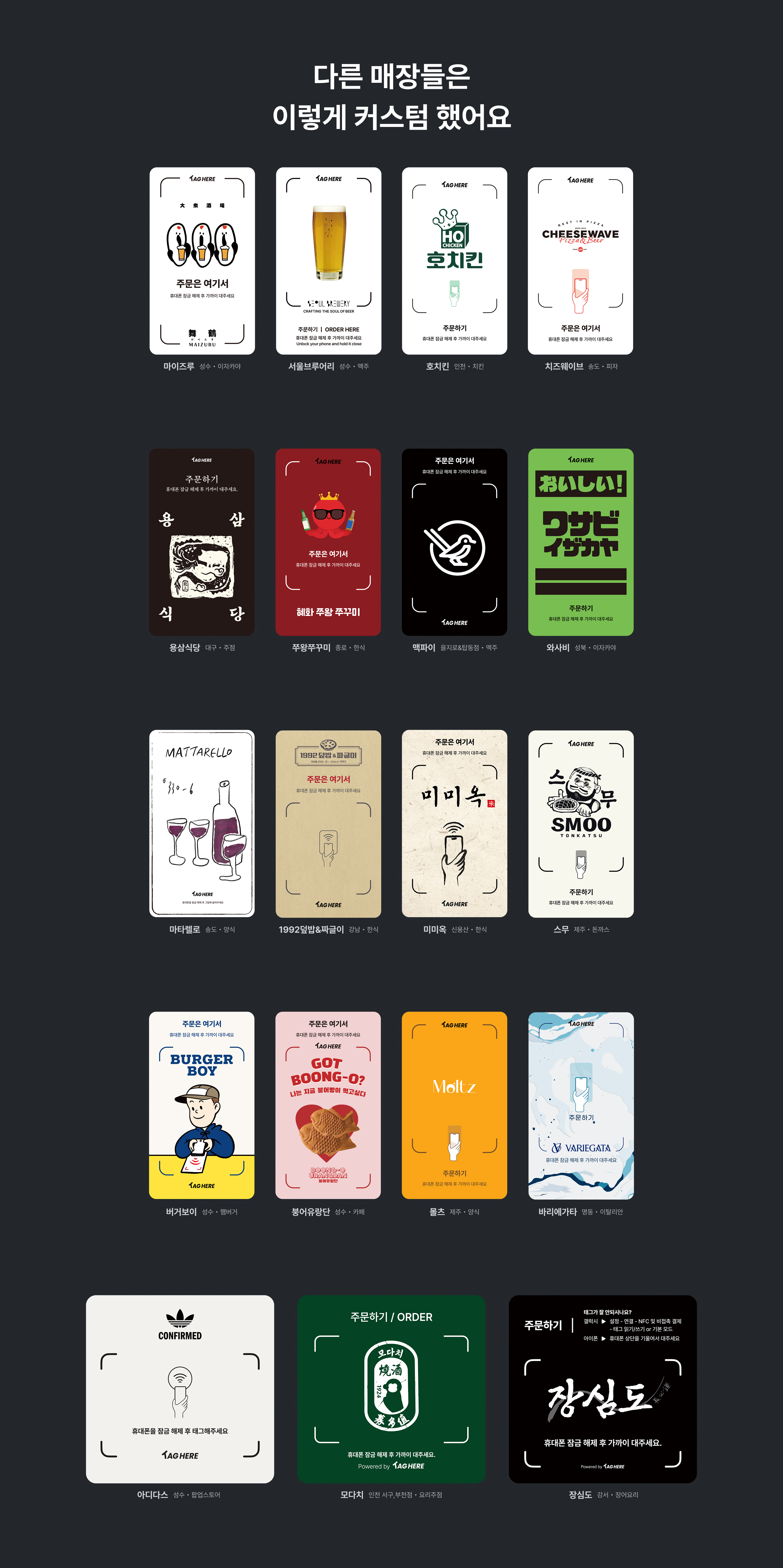태그히어를 통해 테이블 오더 커스텀을 진행한 매장들입니다.