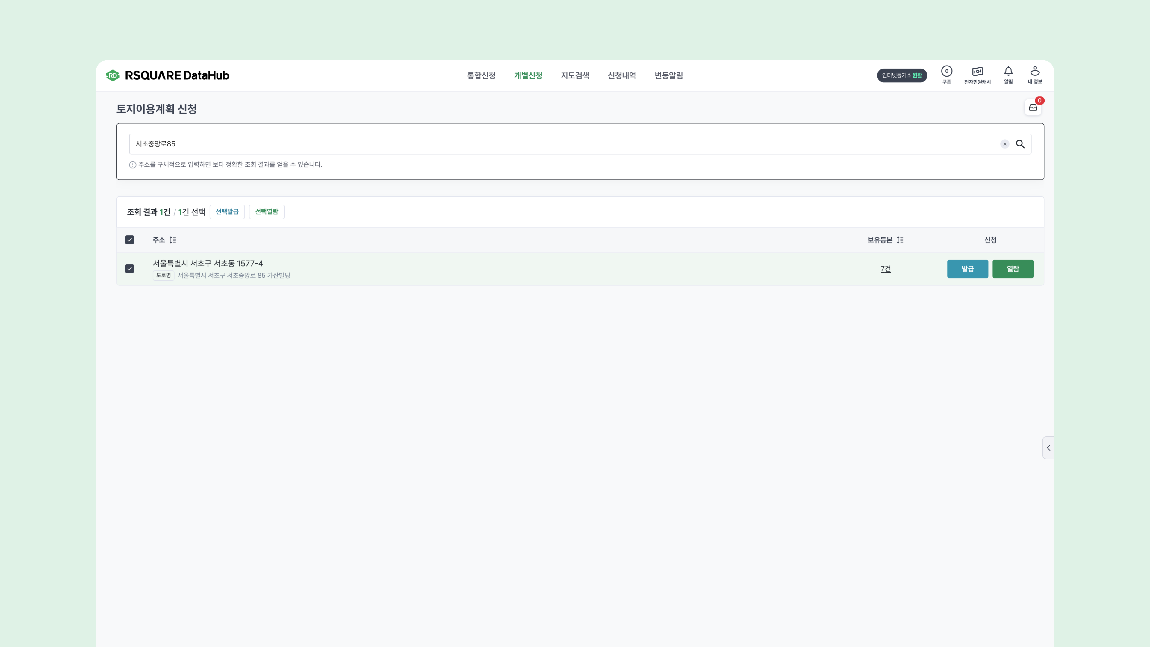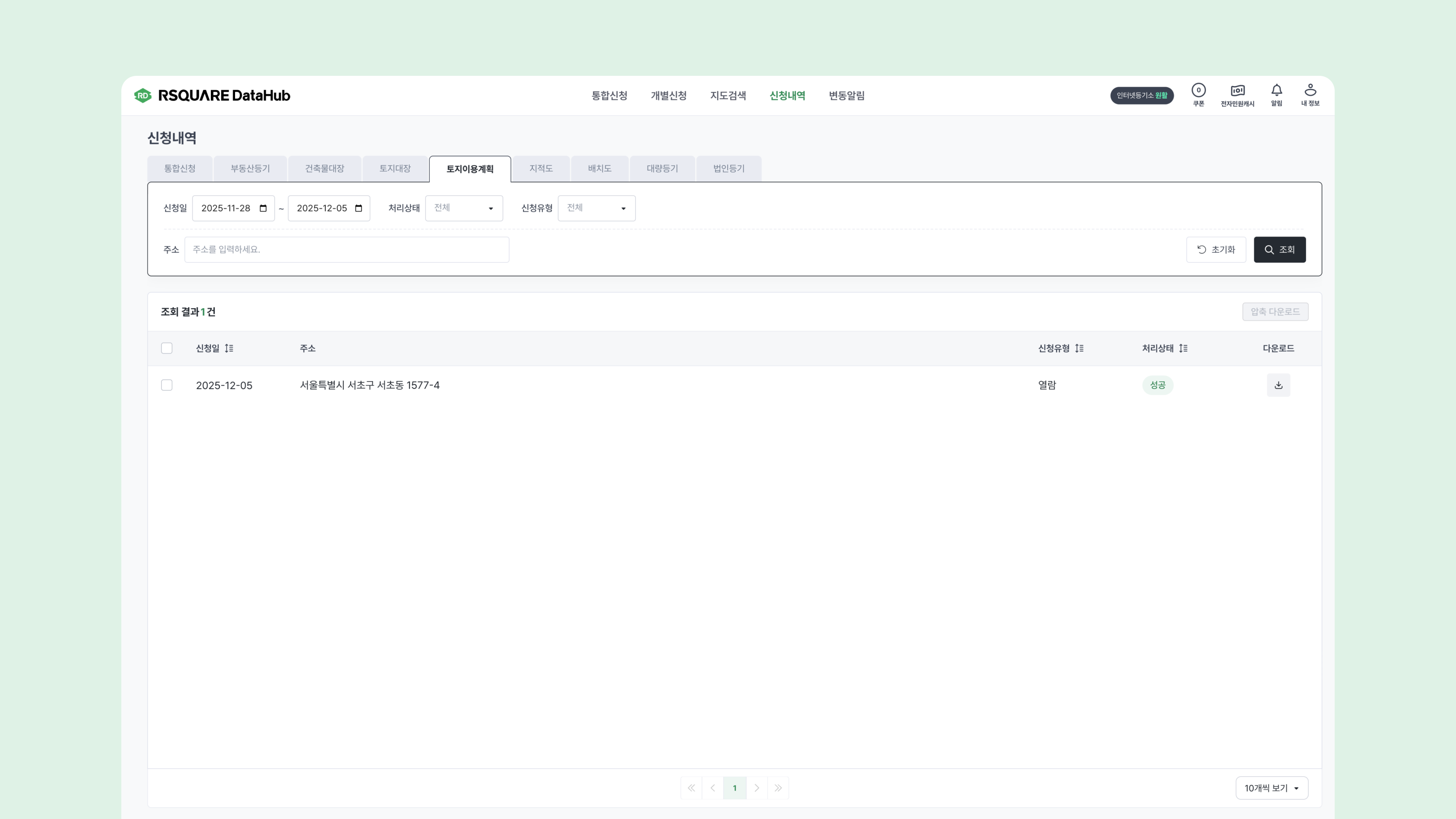 5️⃣ 토지이용계획 신청 내역 조회하기