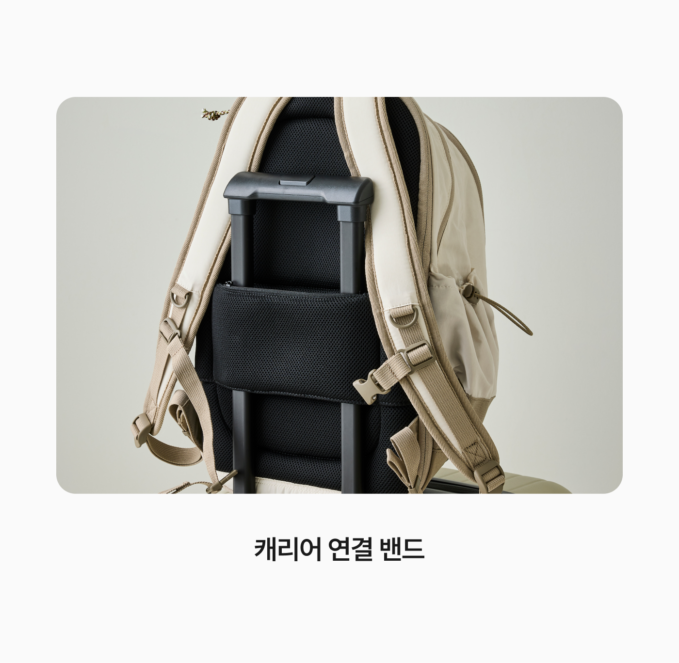 캐리어 손잡이에 가방을 고정할 수 있어 편리해요.