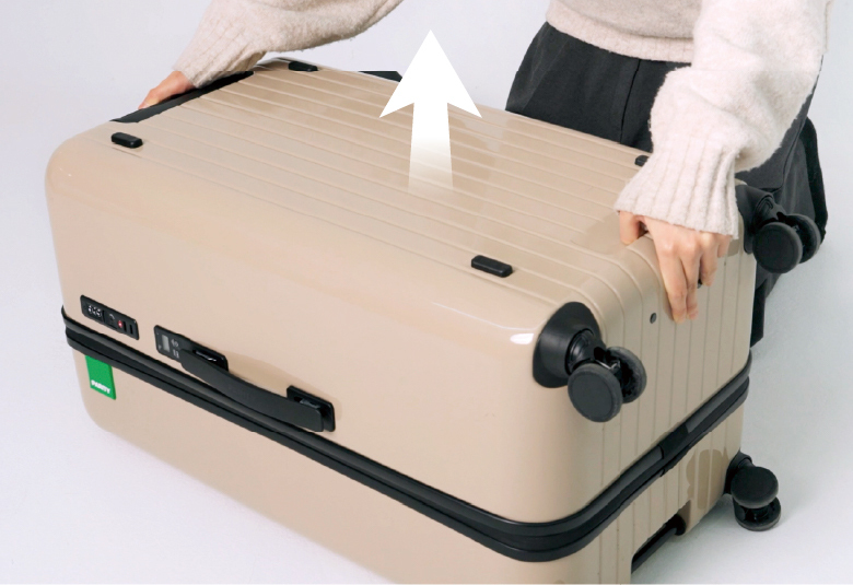 캐리어의 뒷면이 위를 향하도록 눕혀주세요.