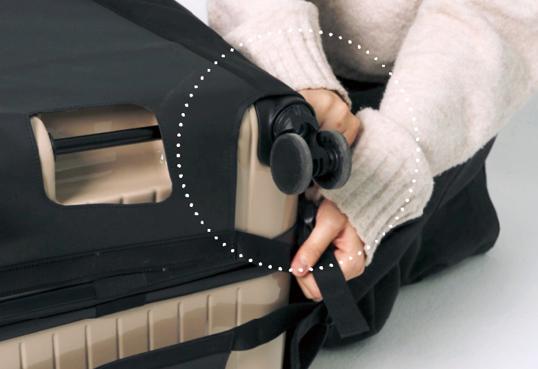 커버가 캐리어를 감싸도록 씌워주세요.