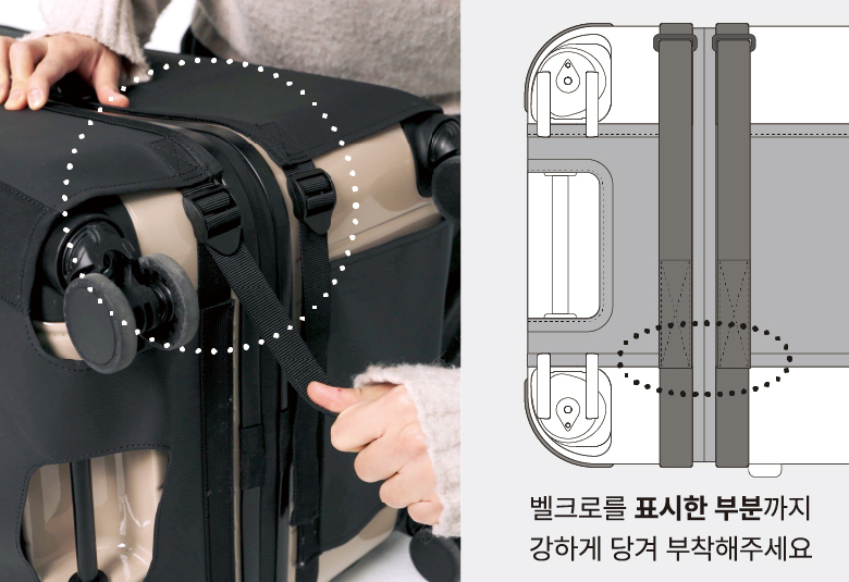 벨크로를 강하게 잡아당겨 부착해 주세요.