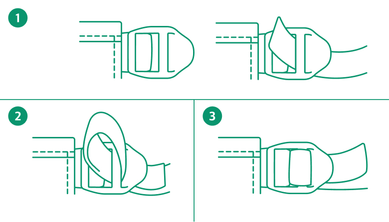 안쪽 벨트 구멍의 뒤에서 앞으로 스트랩을 통과시켜 주세요.