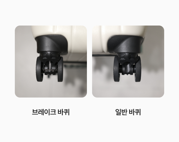 캐리어에는 서로 다른 타입의 바퀴가 장착되어 있습니다.