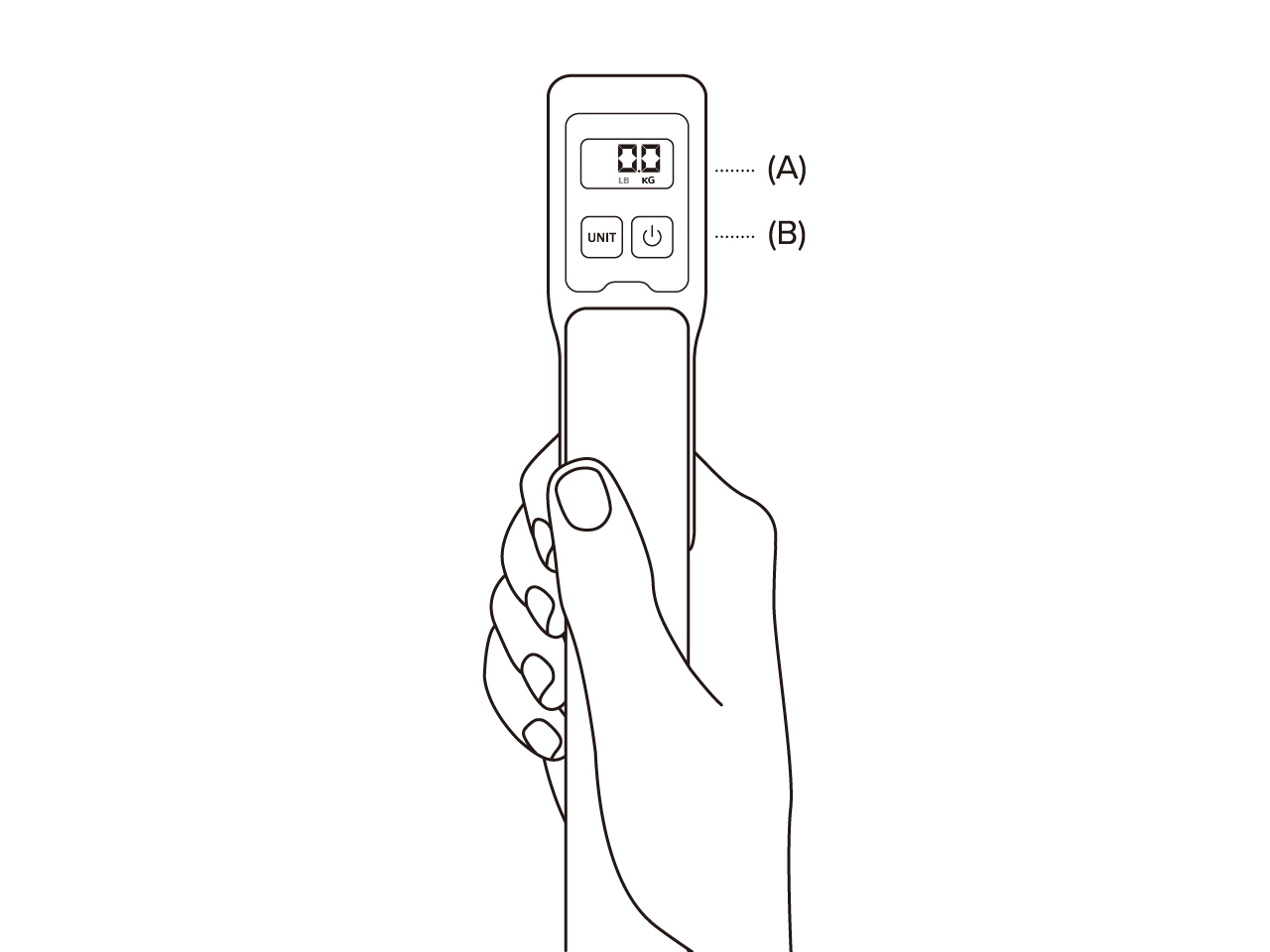 전원(B)을 길게 눌러 저울 기능을 종료합니다.