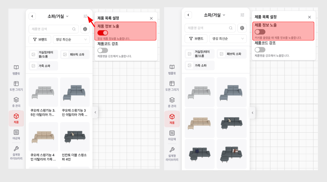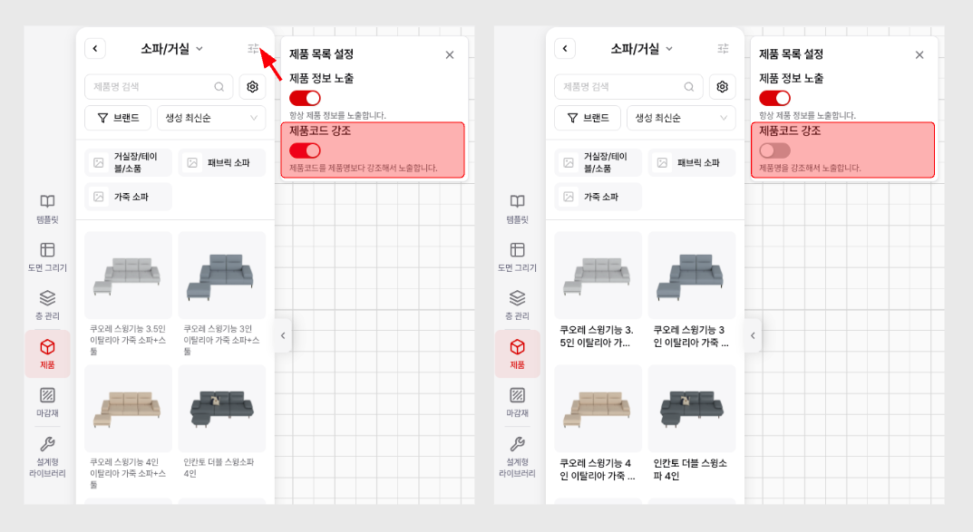 ์ค์ ์์ ์ ํ์ฝ๋ ๊ฐ์กฐ ON/OFF ์ ํ ๊ฐ๋ฅ