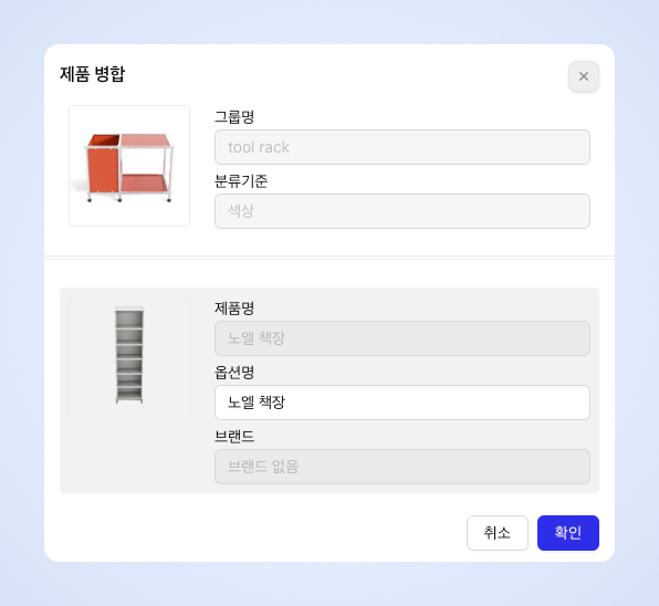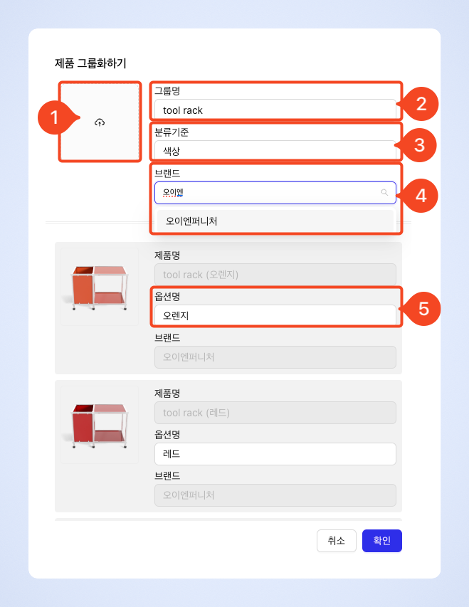 그룹화 기준을 입력합니다. (예: 색상, 타입, 사이즈 등)