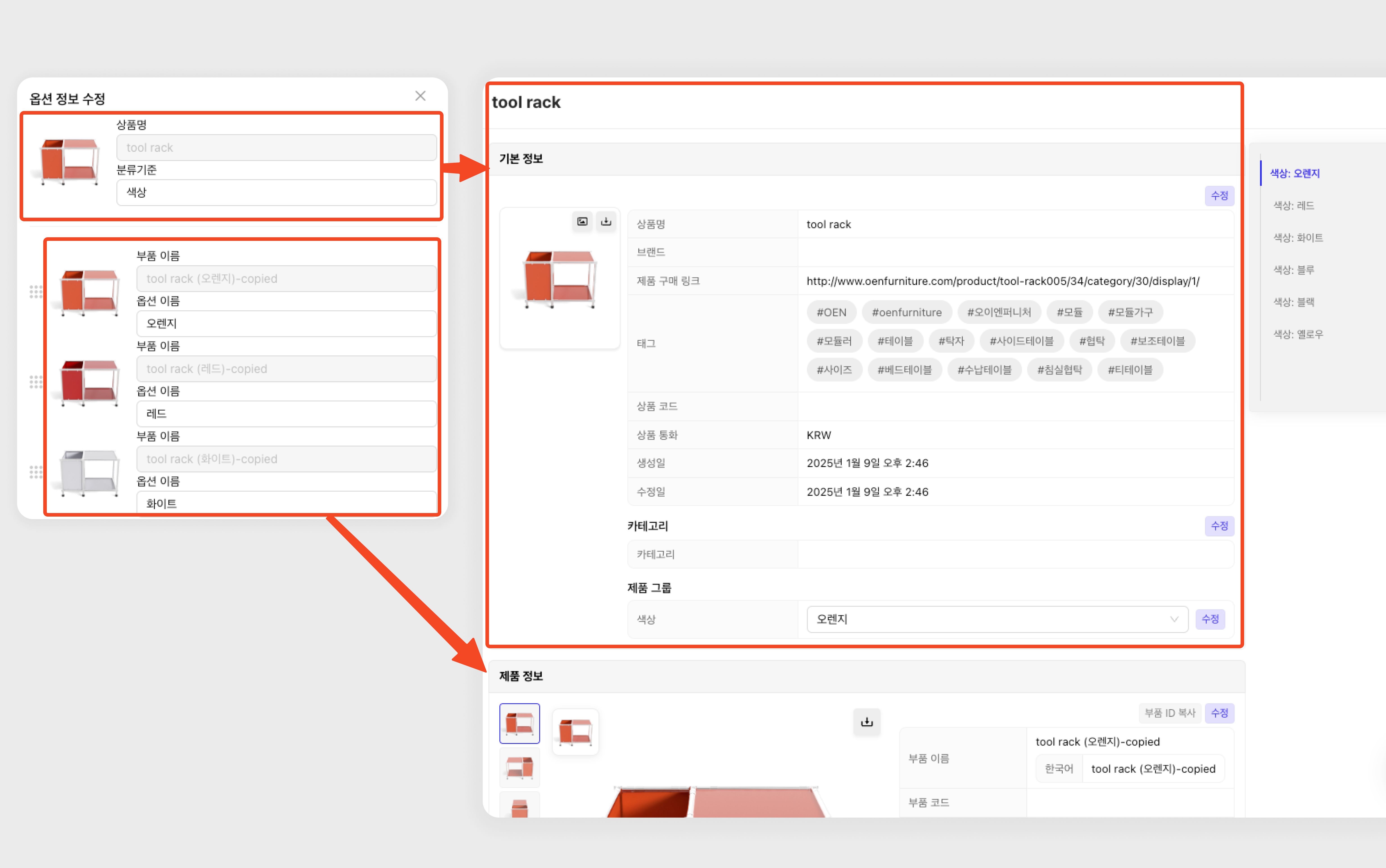 초기값은 제품명으로 자동 설정되지만, 옵션명으로 수정하는 것이 좋습니다.