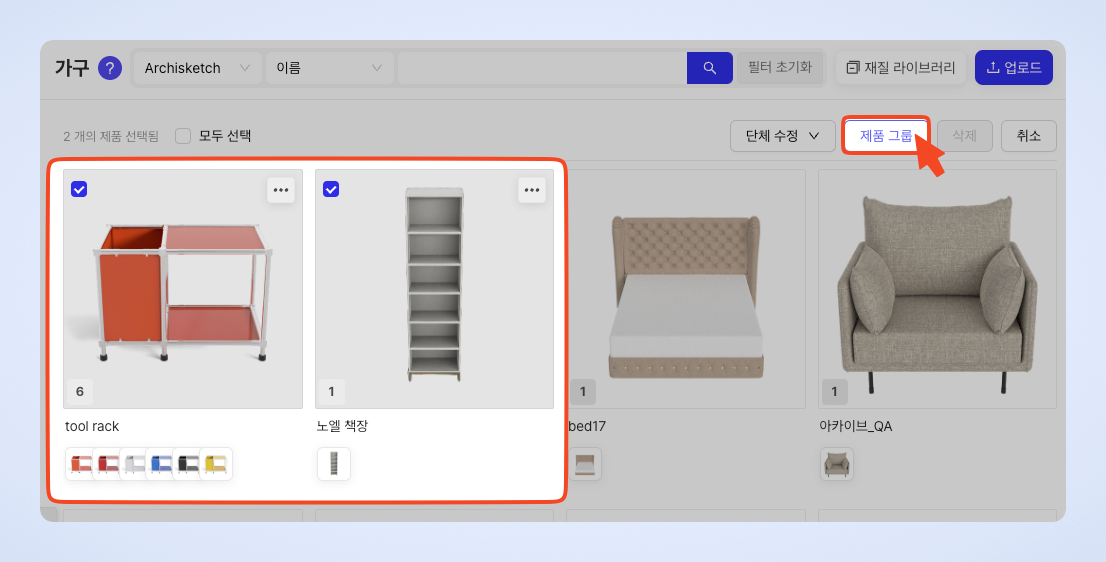 자, 이제 가구를 그룹화하는 방법을 하나씩 알아볼까요?