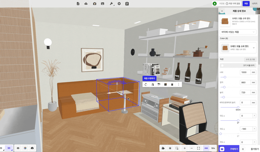 가구를 그룹화하면 관리와 수정이 훨씬 편리해집니다!특히, 에디터에서 그룹으로 묶인 제품은 한 번 배치한 상태에서도 쉽게 수정하거나 빠르게 변경할 수 있는 큰 장점이 있어요.